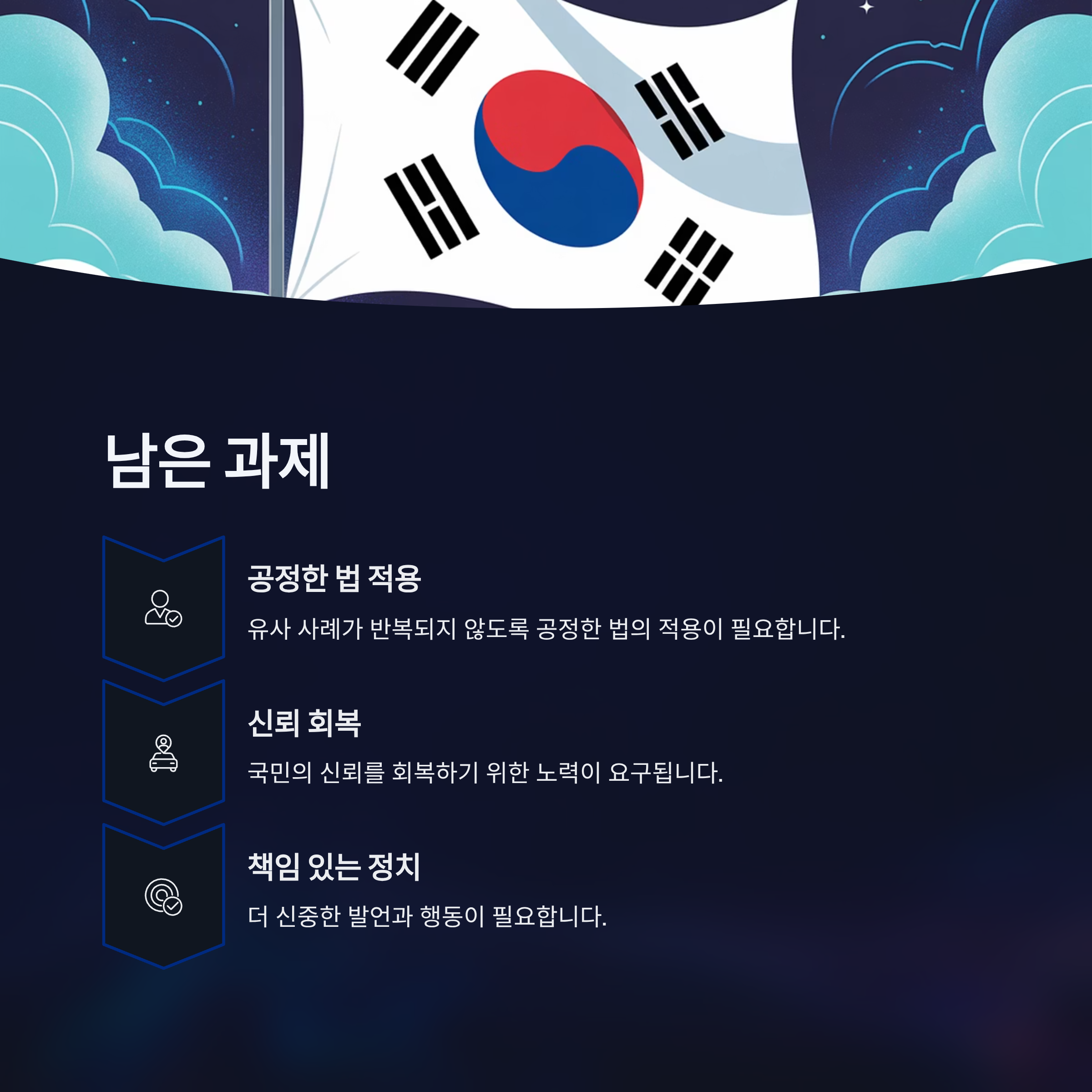 최순실 국정농단 사건은 대한민국 정치사에 지울 수 없는 상처를 남겼습니다. 안민석의 의혹 제기가 불씨를 당긴 데에는 분명 성과도 있지만, 그의 발언으로 인한 사회적 신뢰 하락과 대중 혼란은 부정적으로 평가됩니다. 이는 단순한 금액의 문제가 아니라, 정치 행동의 영향력을 어떻게 법적, 윤리적으로 균형있게 받아들여야 하는지에 대한 더 큰 고민을 제기합니다.
