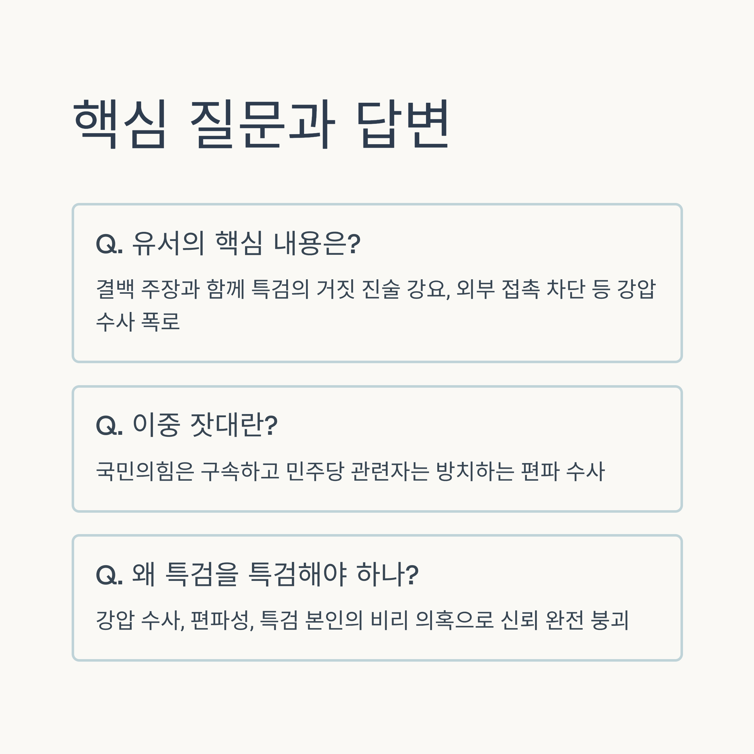 | Q3. 특검을 특검해야 한다는 주장이 나오는 배경은 무엇인가요? |