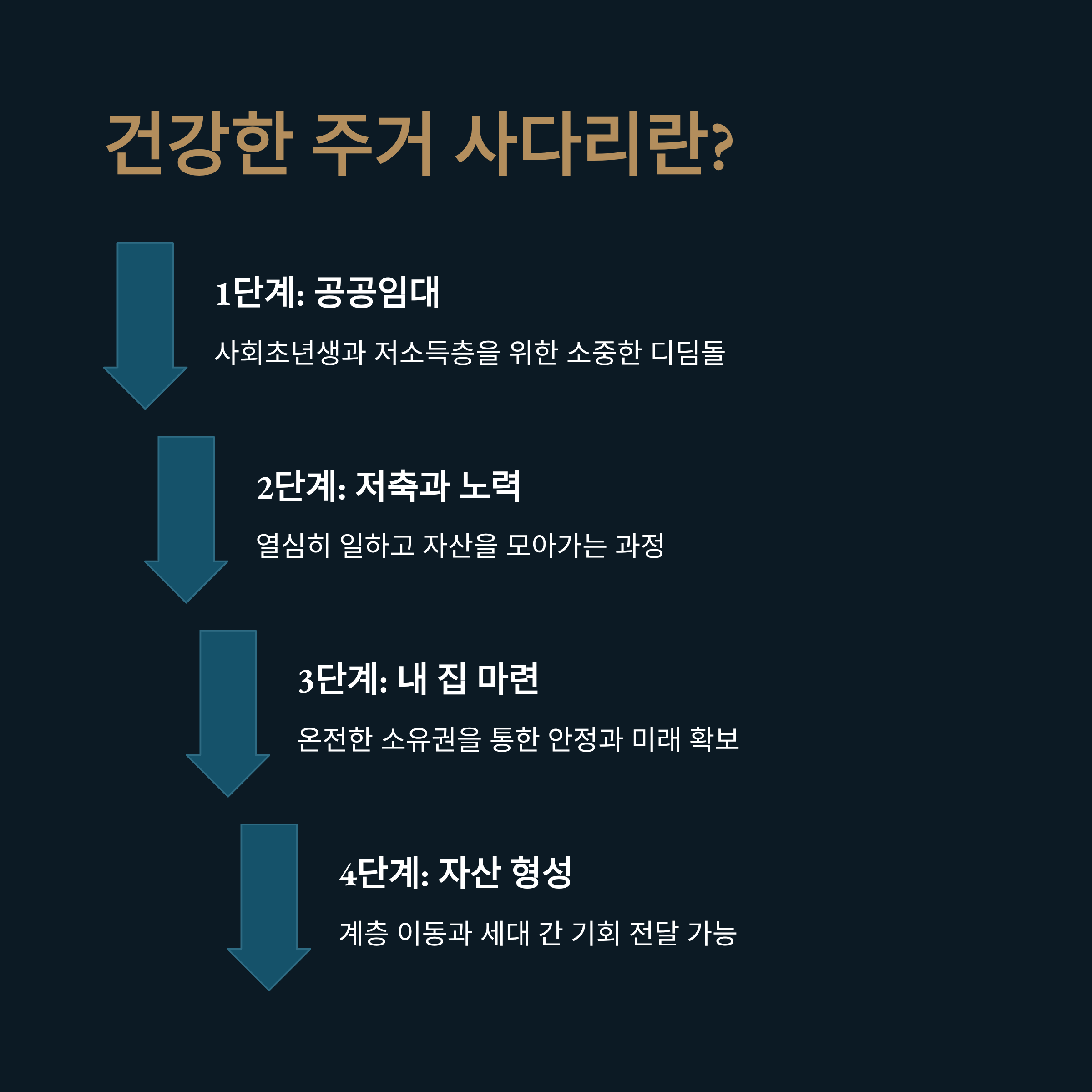 진정한 주거 문제 해결은 '임대'의 틀에 국민을 가두는 것이 아니라, 누구나 노력하면 내 집을 가질 수 있다는 희망의 '주거사다리'를 튼튼하게 복원하는 것에서 시작되어야 합니다.