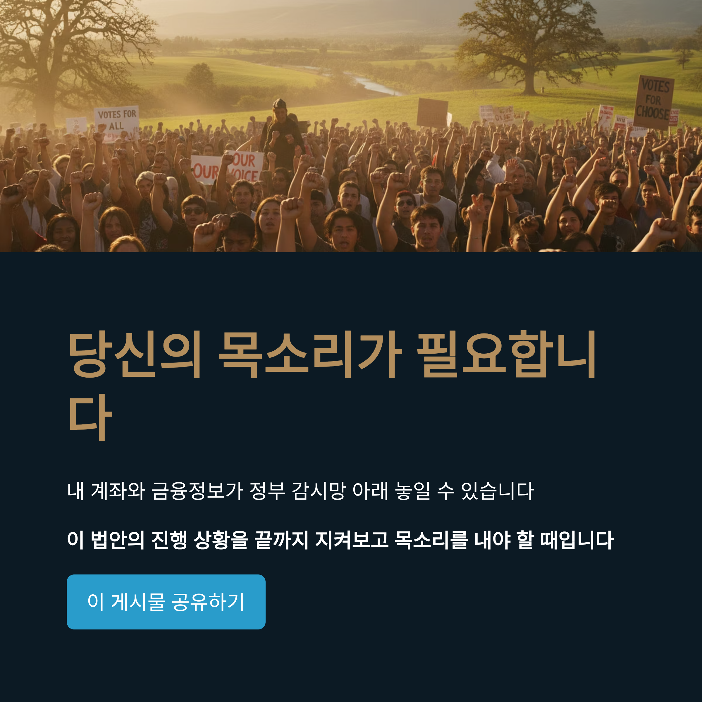 | A1. 감독원이 설치되면 법원의 영장 없이도 개인의 은행 대출 정보, 담보 설정 내역, 신용 정보 등을 정부가 열람할 수 있게 됩니다. 뿐만 아니라 부동산 매매 대금이 어떤 계좌를 거쳐 이동했는지에 대한 구체적인 자금 흐름까지 파악할 수 있어, 사실상 개인의 자산 운용 내역 전체가 감시 대상이 될 수 있습니다. |