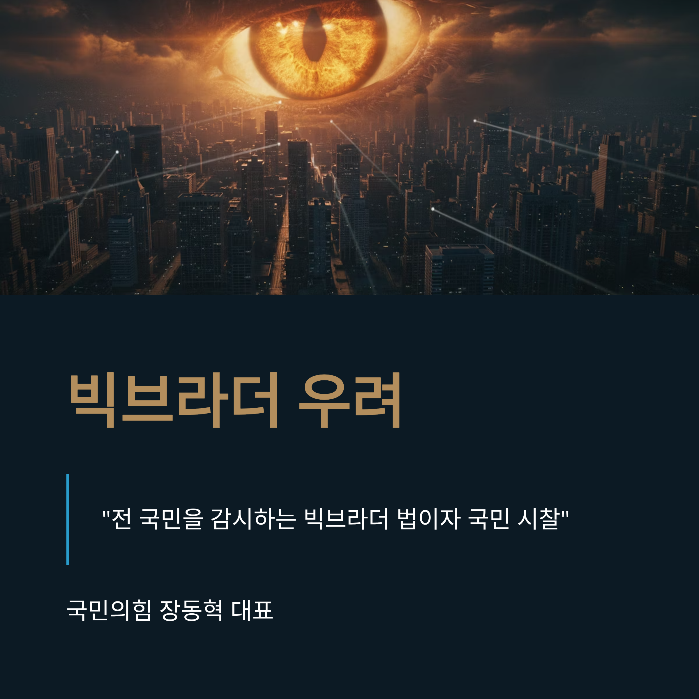 | A3. 국민의힘 장동혁 대표와 비판론자들은 이 기구를 조지 오웰의 소설 1984에 빗대어 '빅브라더'라고 부르며 강력히 반대합니다. 국무총리실 소속으로 두는 것은 대통령실 직할 통치를 의미하며, 이는 헌법상 영장주의를 무력화하고 국민을 상시 감시하는 '현대판 시찰'이라며 법안 철회를 요구하고 있습니다. |