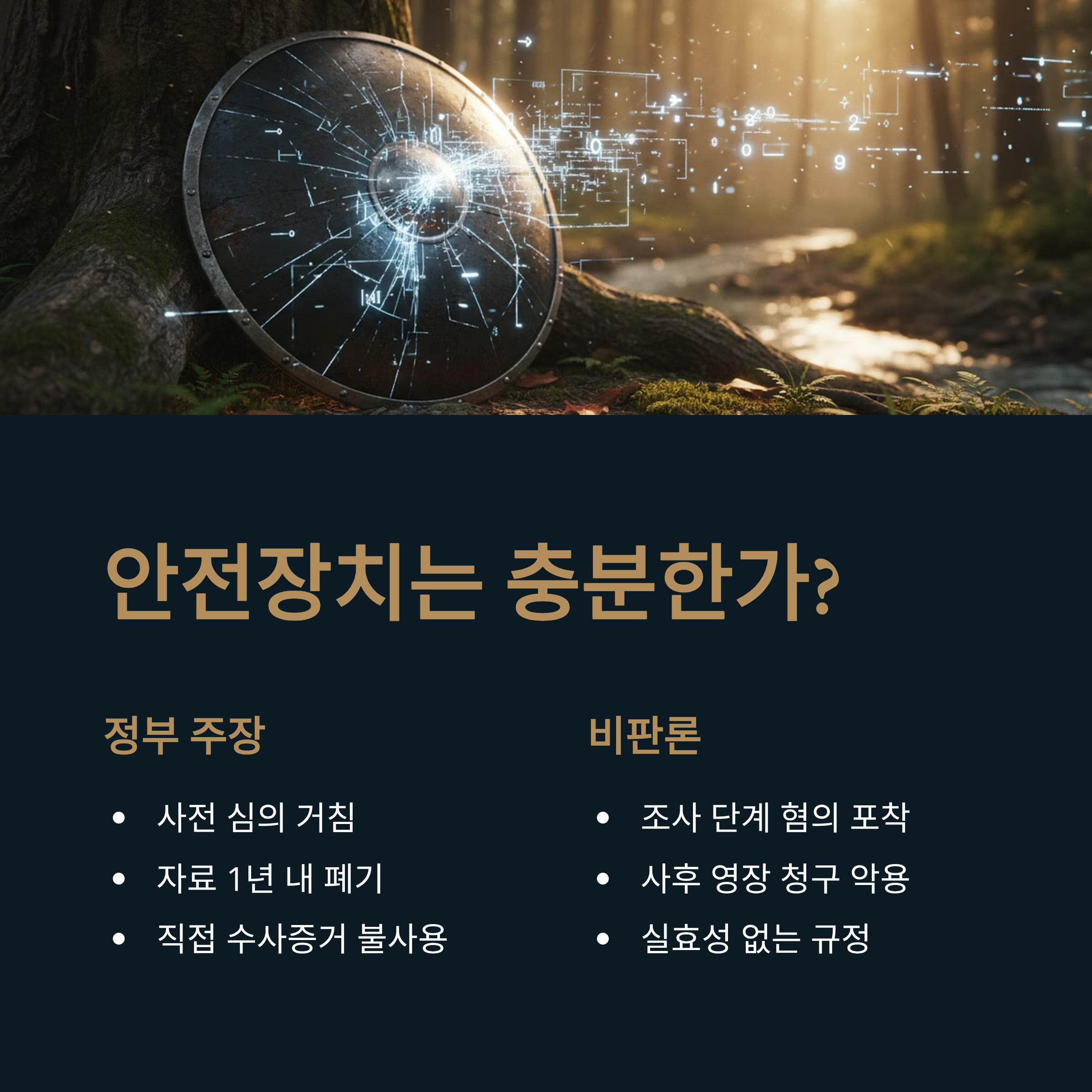 자료의 1년 내 폐기 등 안전장치를 내세우지만, 조사 정보를 바탕으로 사후 영장을 청구하는 '선 사찰 후 수사' 방식이 우려됩니다.