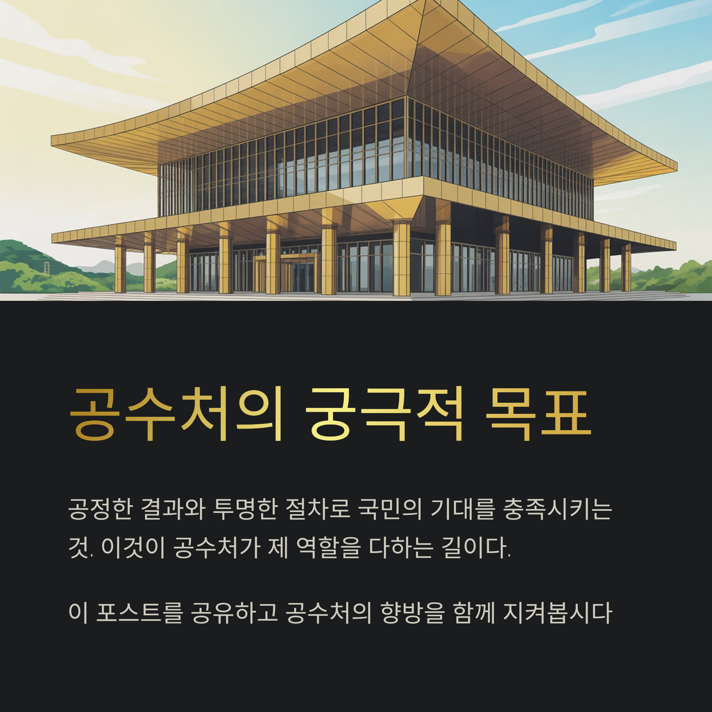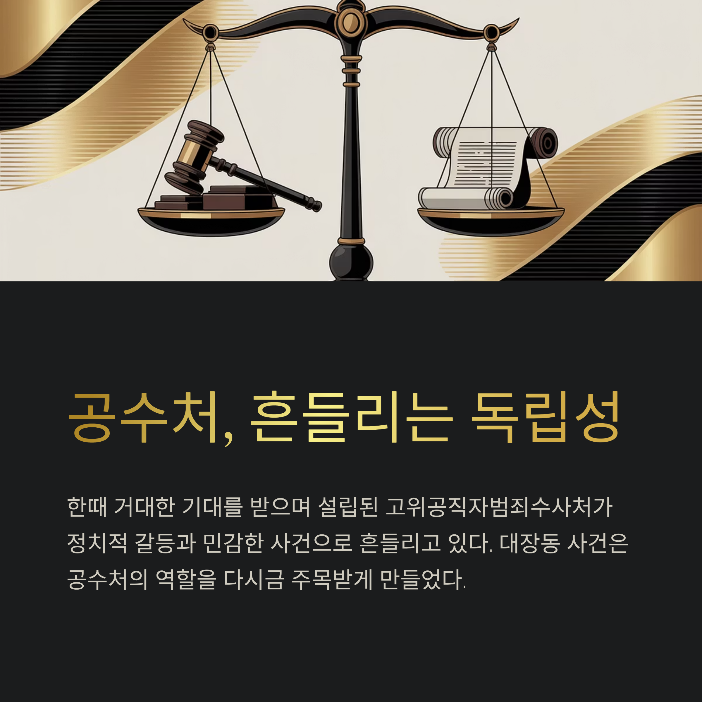 현재 공수처가 맡고 있는 검찰 항소 포기 의혹이나 대장동 사건 수사의 방향성은 그들이 독립수사기관으로 기능하고 있는지를 판단할 수 있는 지표로 작용할 것이다. 만약 정치적 중립성을 유지하지 못하고 특정 세력에 대한 편향적 판단을 내린다면, 그 후폭풍은 공수처의 존립에까지 영향을 미칠 수 있다.