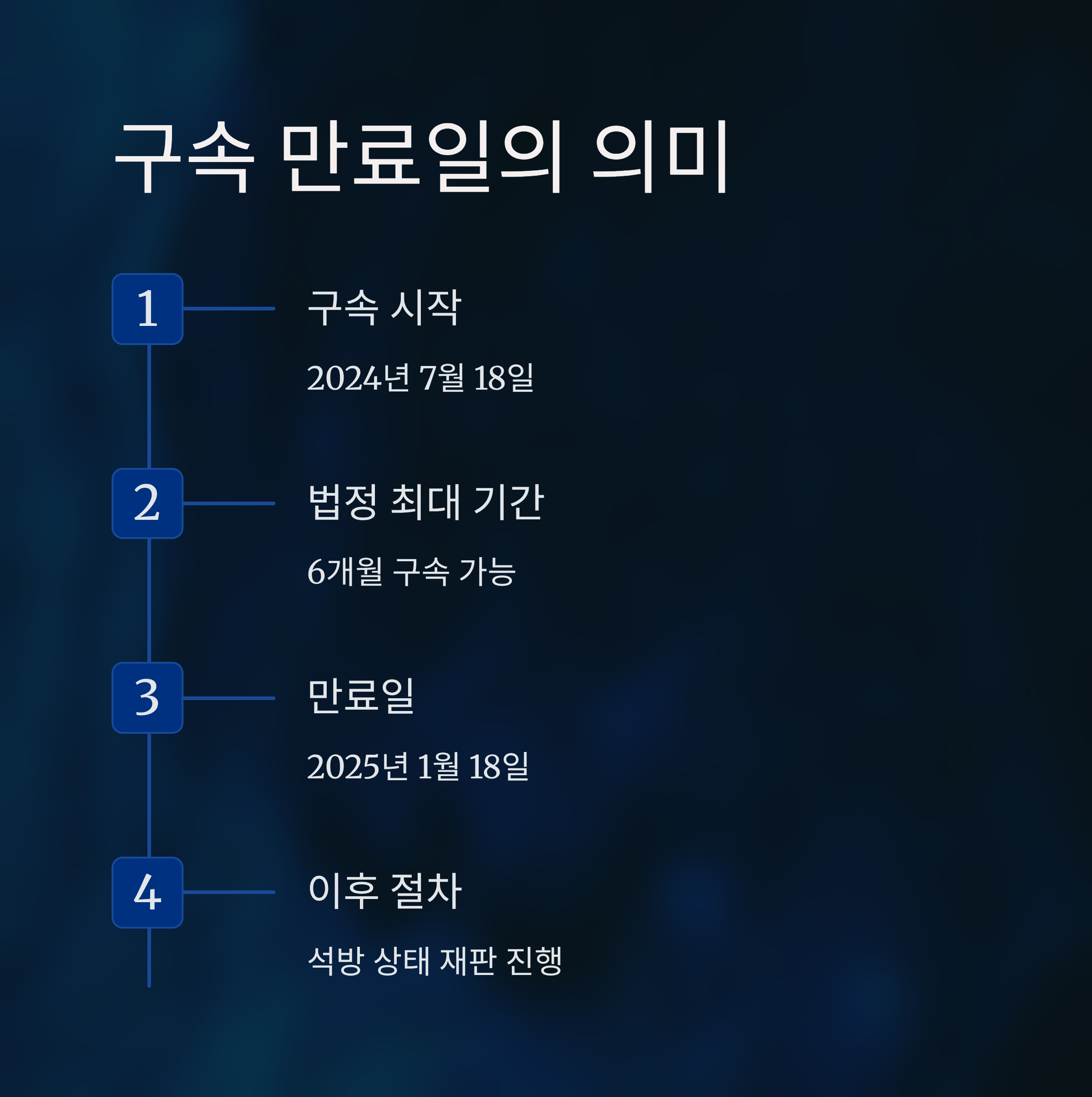 현재 구속 만료일은 2024년 1월 18일로, 해당일까지 재판이 마무리되지 않으면 석방된 상태에서 재판이 진행될 가능성이 큽니다.