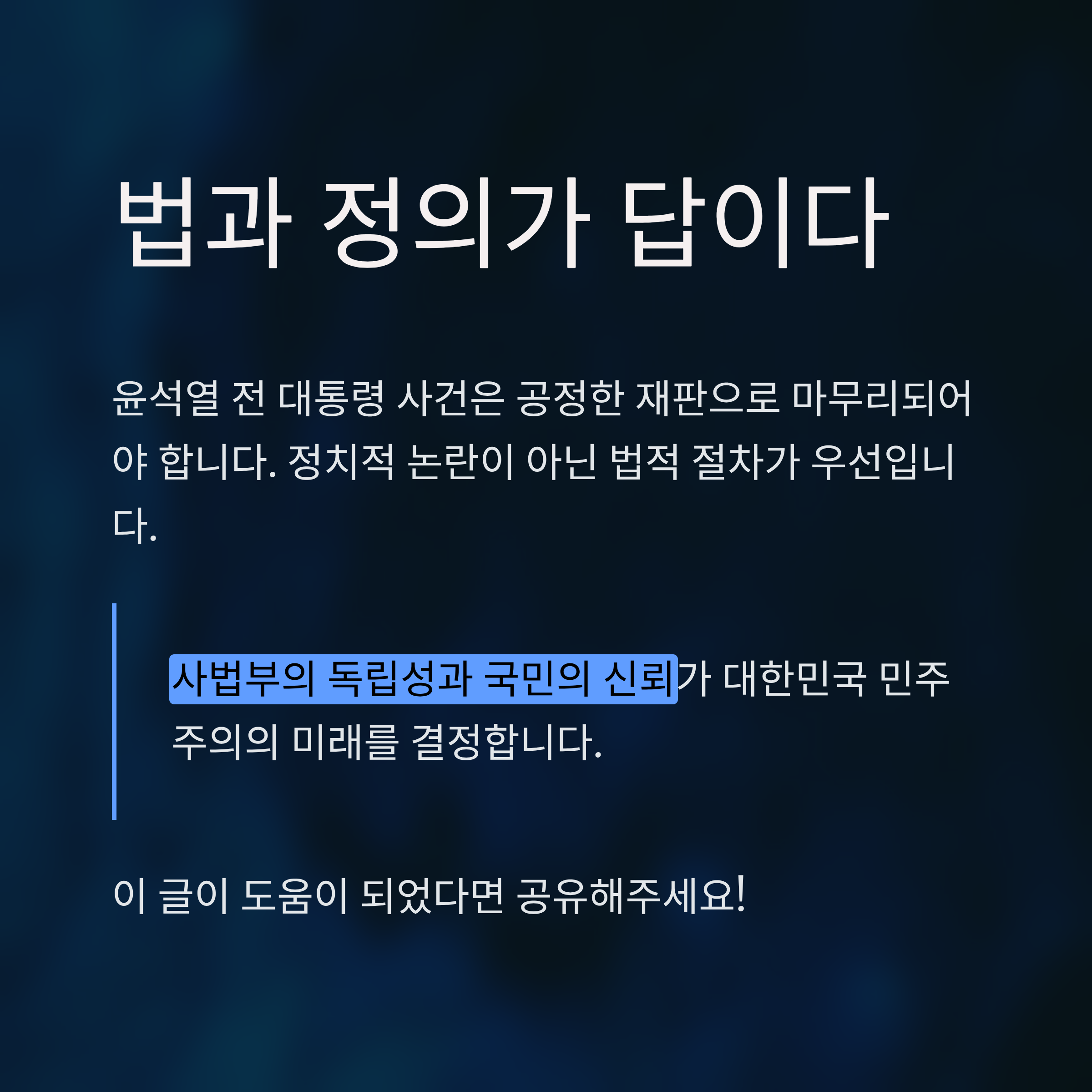 앞으로 윤 전 대통령의 재판 결과와 사회적 여파가 대한민국에 어떤 영향을 미칠지 주목됩니다.