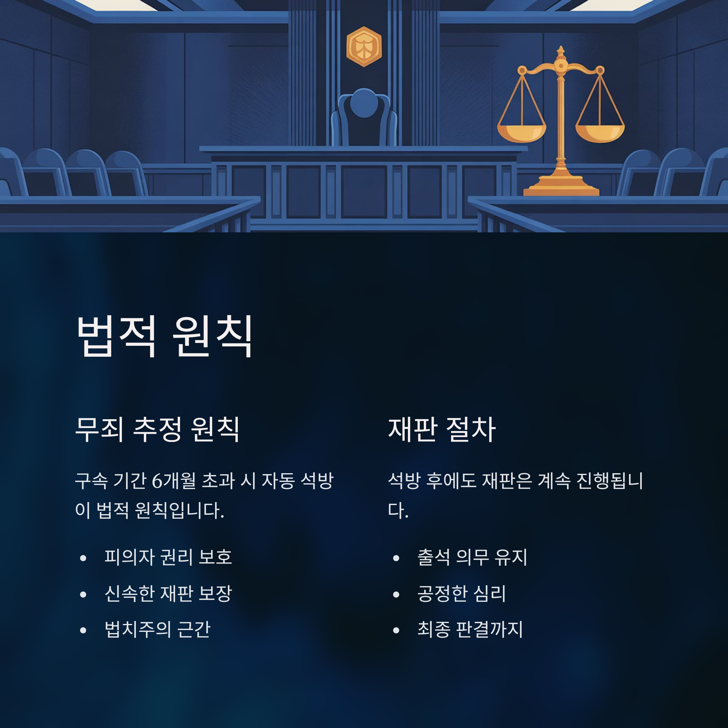 현행 형사법에 따르면 구속된 피의자는 최장 6개월 내에 재판이 마무리되어야 합니다. 이 기간을 초과하면 구속 상태가 해제되며, 피의자는 석방된 상태에서 남은 재판을 진행하게 됩니다. 이는 무죄 추정 원칙을 존중하기 위한 명확한 법적 시스템입니다. 그러나 박지원 전 의원의 발언은 이러한 법 원칙을 간접적으로 부정하는 뉘앙스를 담고 있어 논란을 키웠습니다. 이 경우, 사법부에 공정성을 유지하면서도 사회적 폭발 가능성을 최소화할 수 있는 균형 잡힌 접근이 절실합니다.