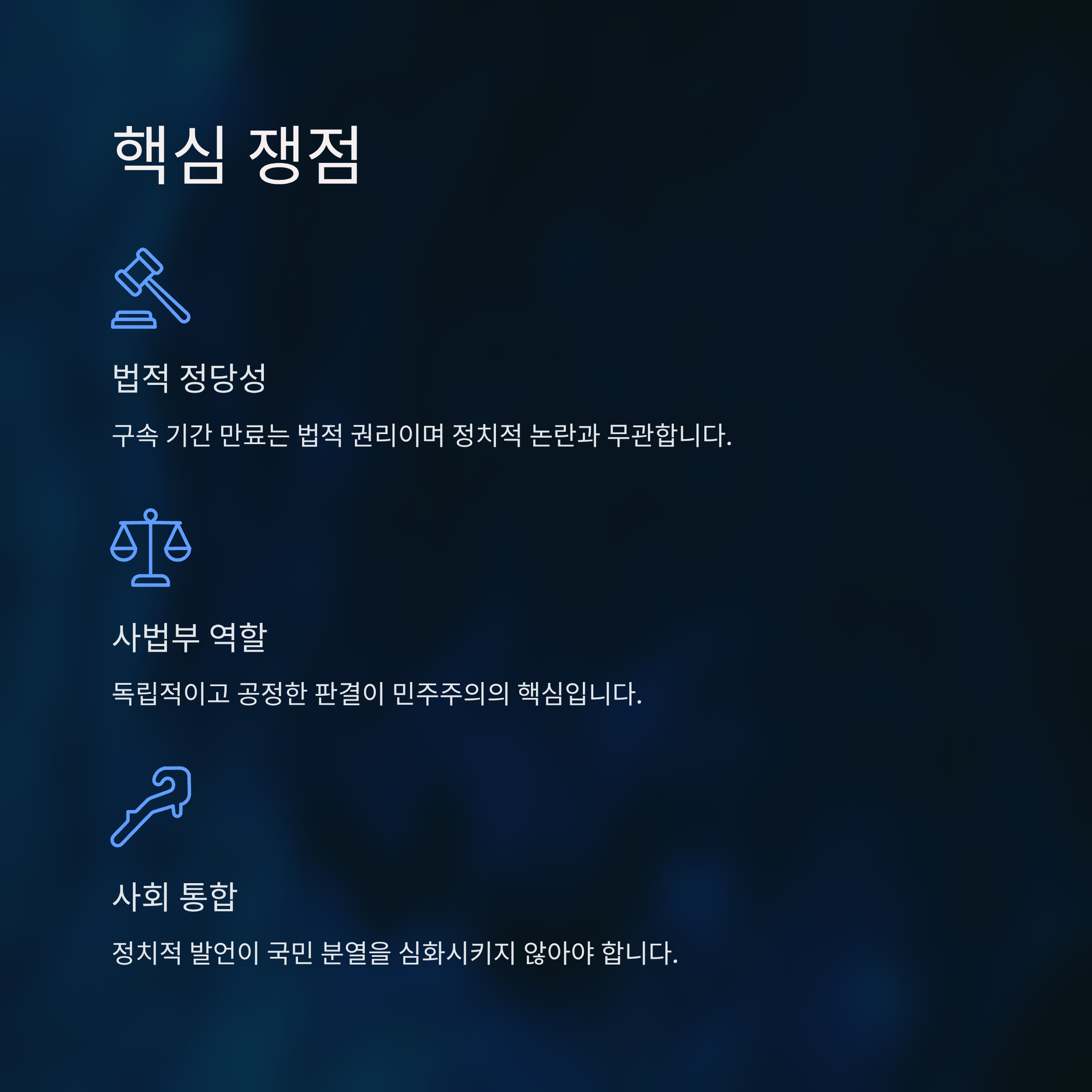 관련 태그: 윤석열, 박지원, 구속 만료, 사법부 독립, 법치주의, 공정 재판, 정치 논란