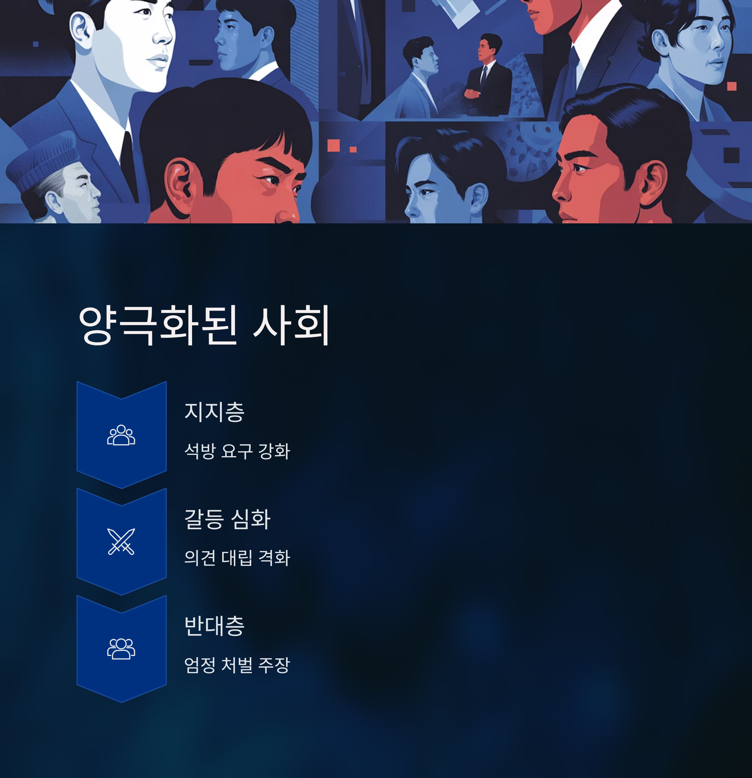 사회적 반응 또한 극명하게 양분되며, 정치적 갈등이 심화되고 있는 형국입니다.