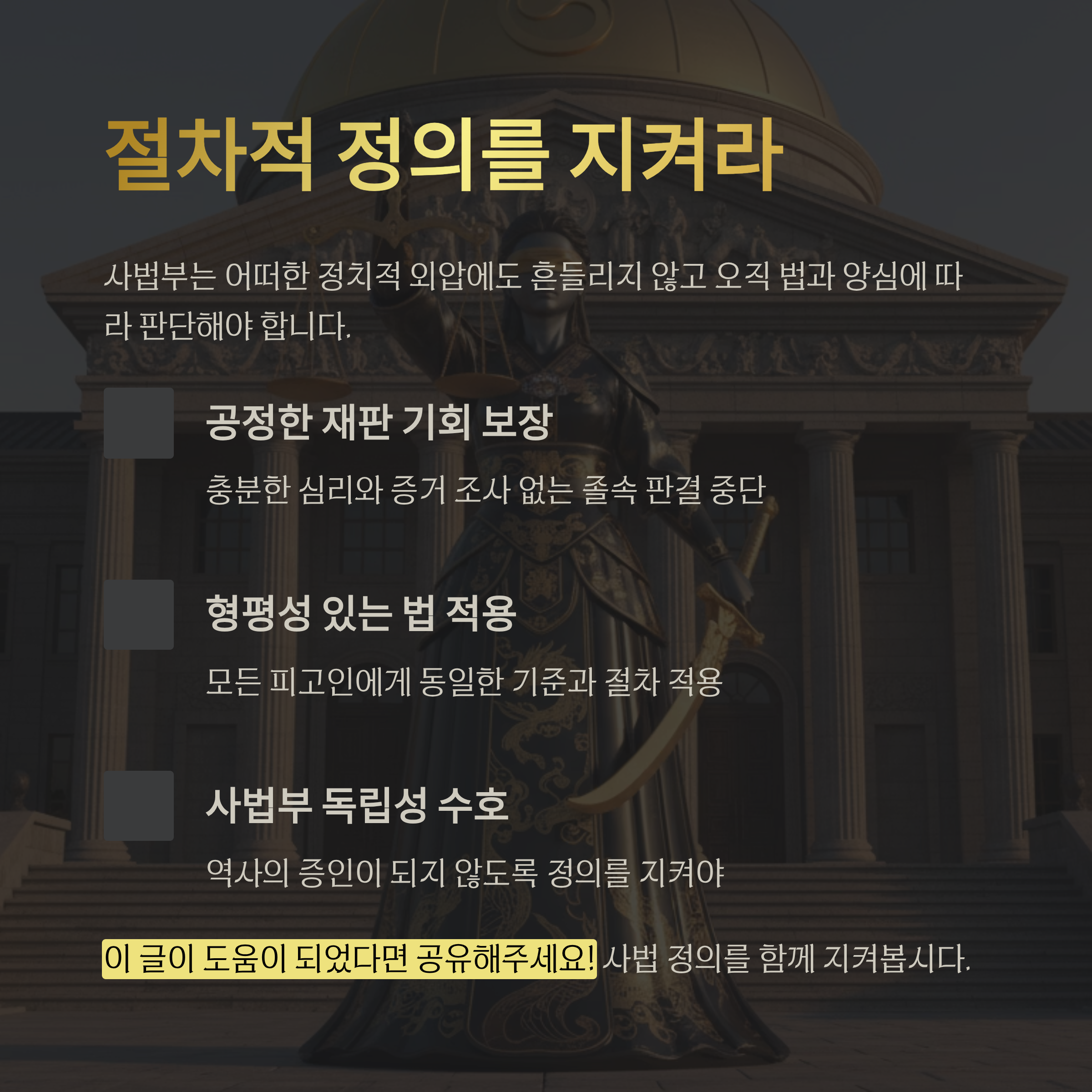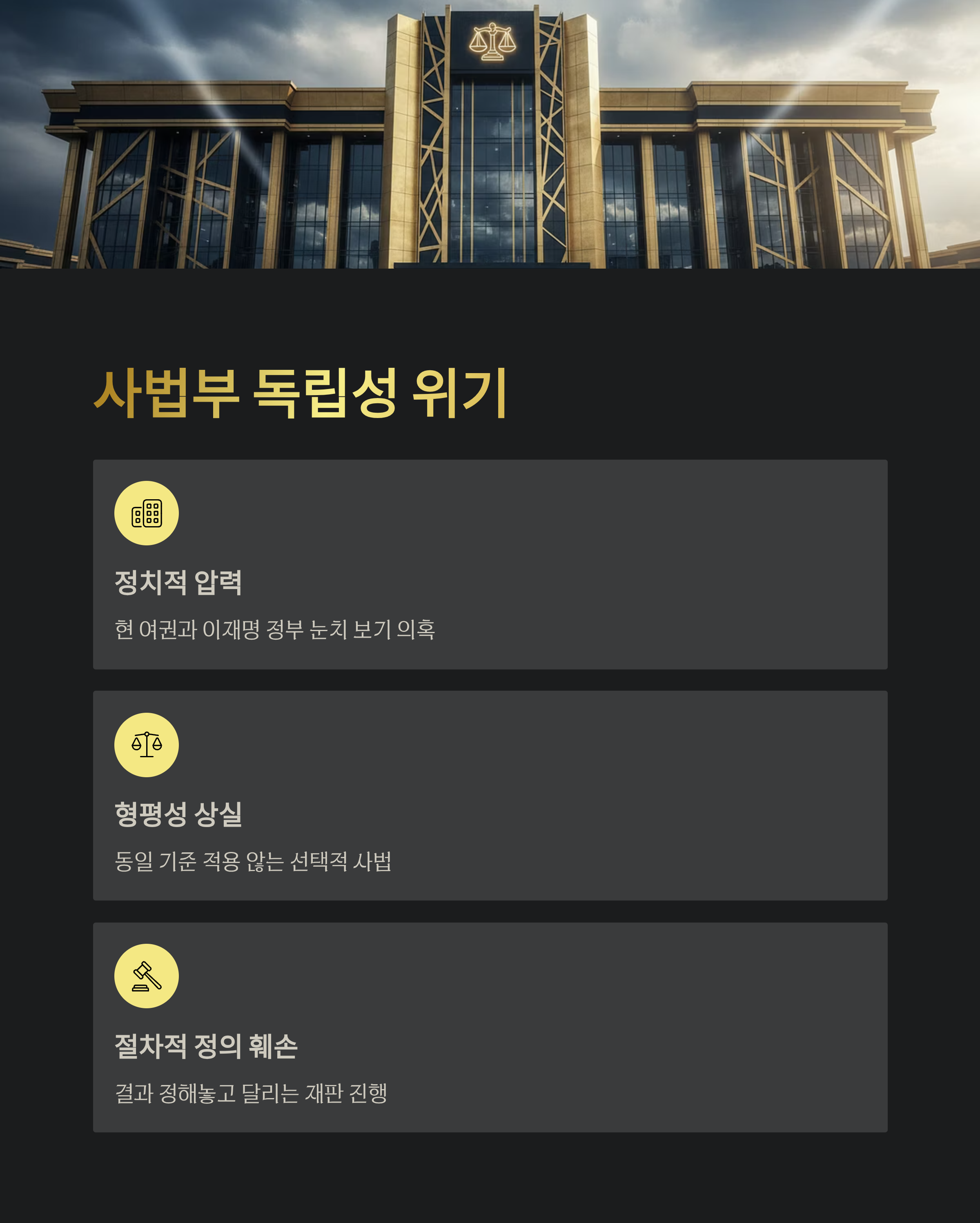 - 4. 결론: 사법부의 정치적 중립성 훼손 우려와 절차적 정의의 중요성
