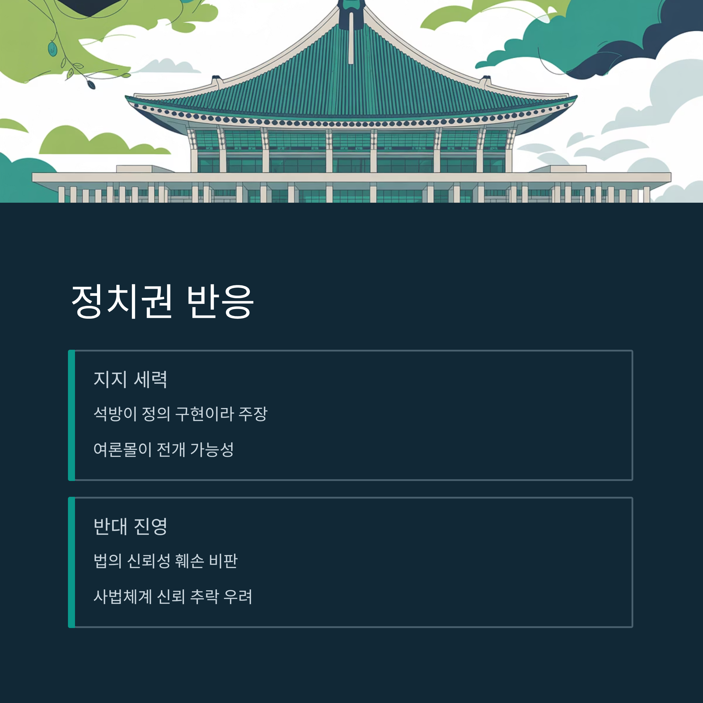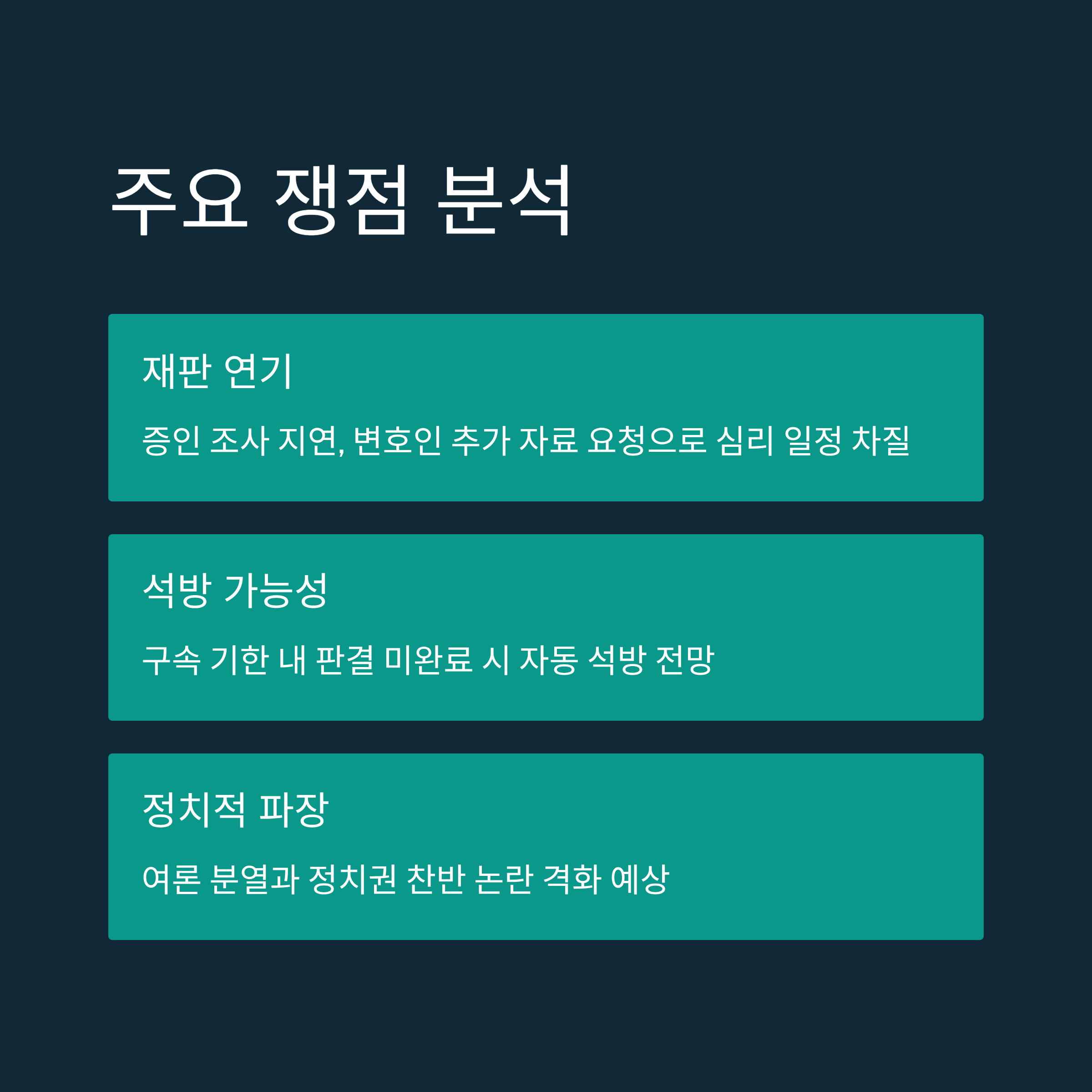 - 법적 쟁점 외에도 정치권에서는 석방 후 발생할 수 있는 여론 역풍 우려가 제기되고 있습니다.