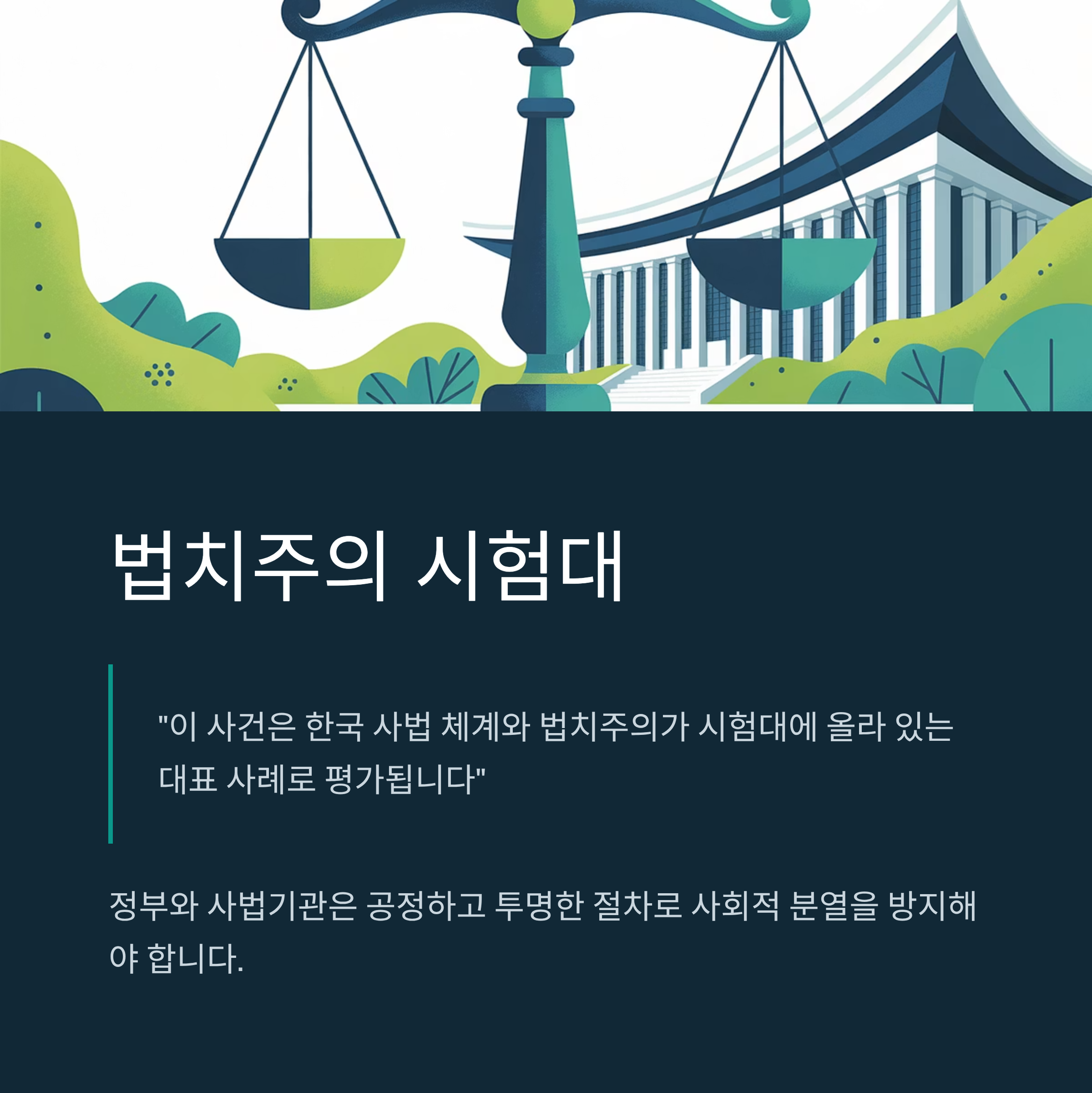- 사건은 한국 사법 체계와 법치주의가 시험대에 올라 있는 대표 사례로 평가됩니다.