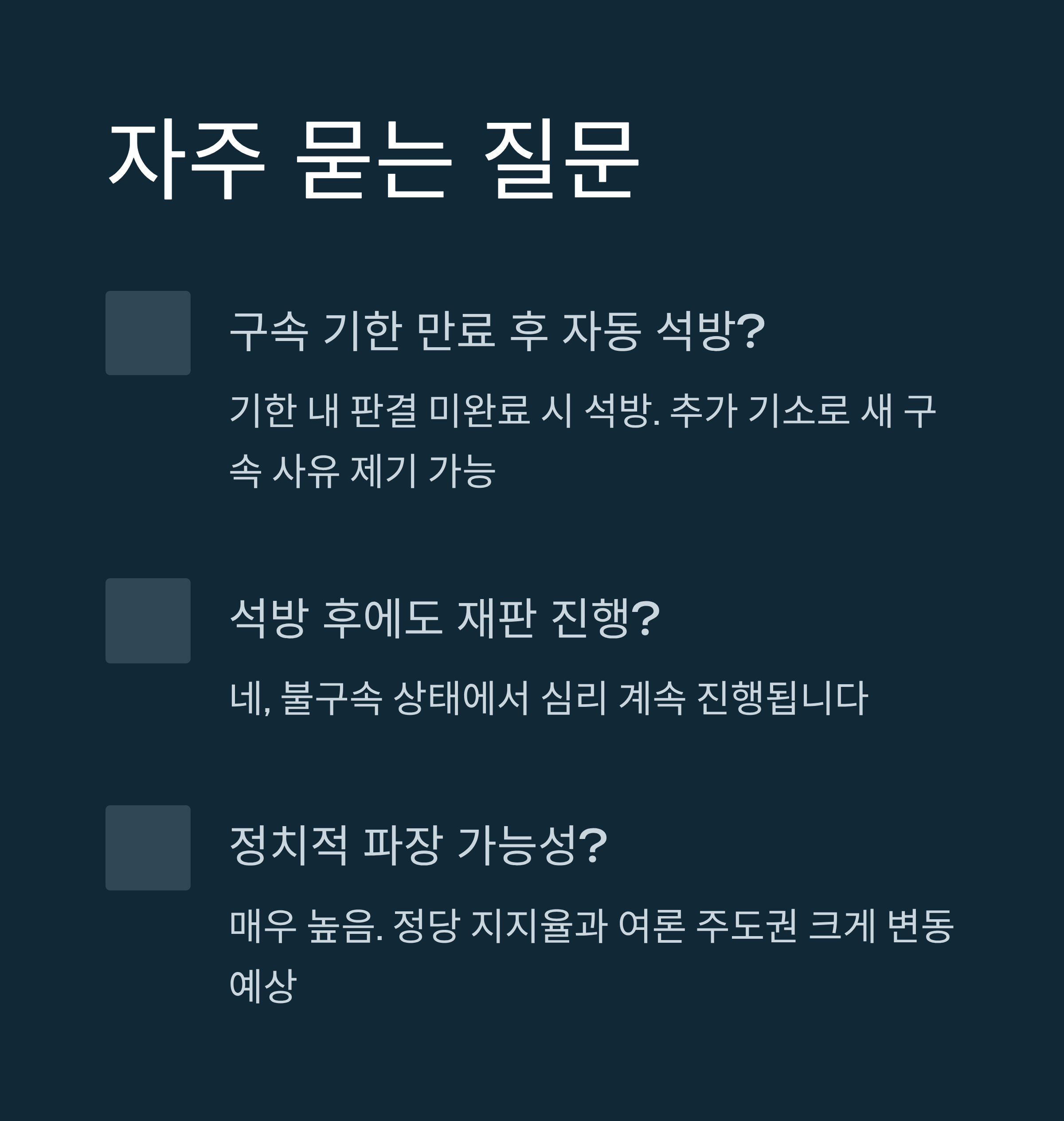 | Q. 재판이 석방 이후에도 이어질 가능성이 있나요? |
