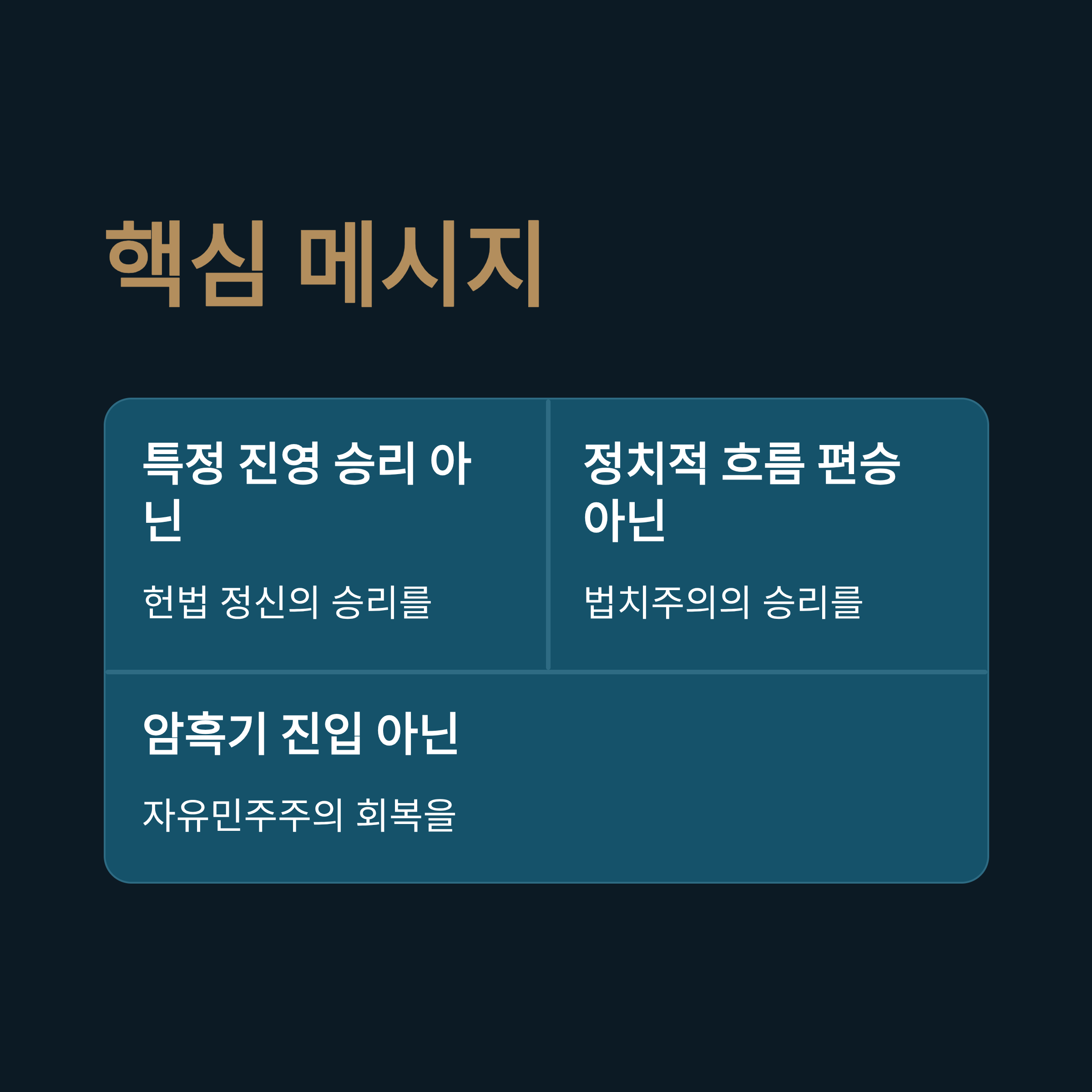 둘째, 이번 판결이 유죄로 나올 경우, 이재명 정부의 독주가 가속화되어 대한민국이 재기 불능의 암흑기에 빠질 것이라는 심각한 우려를 표명했습니다.