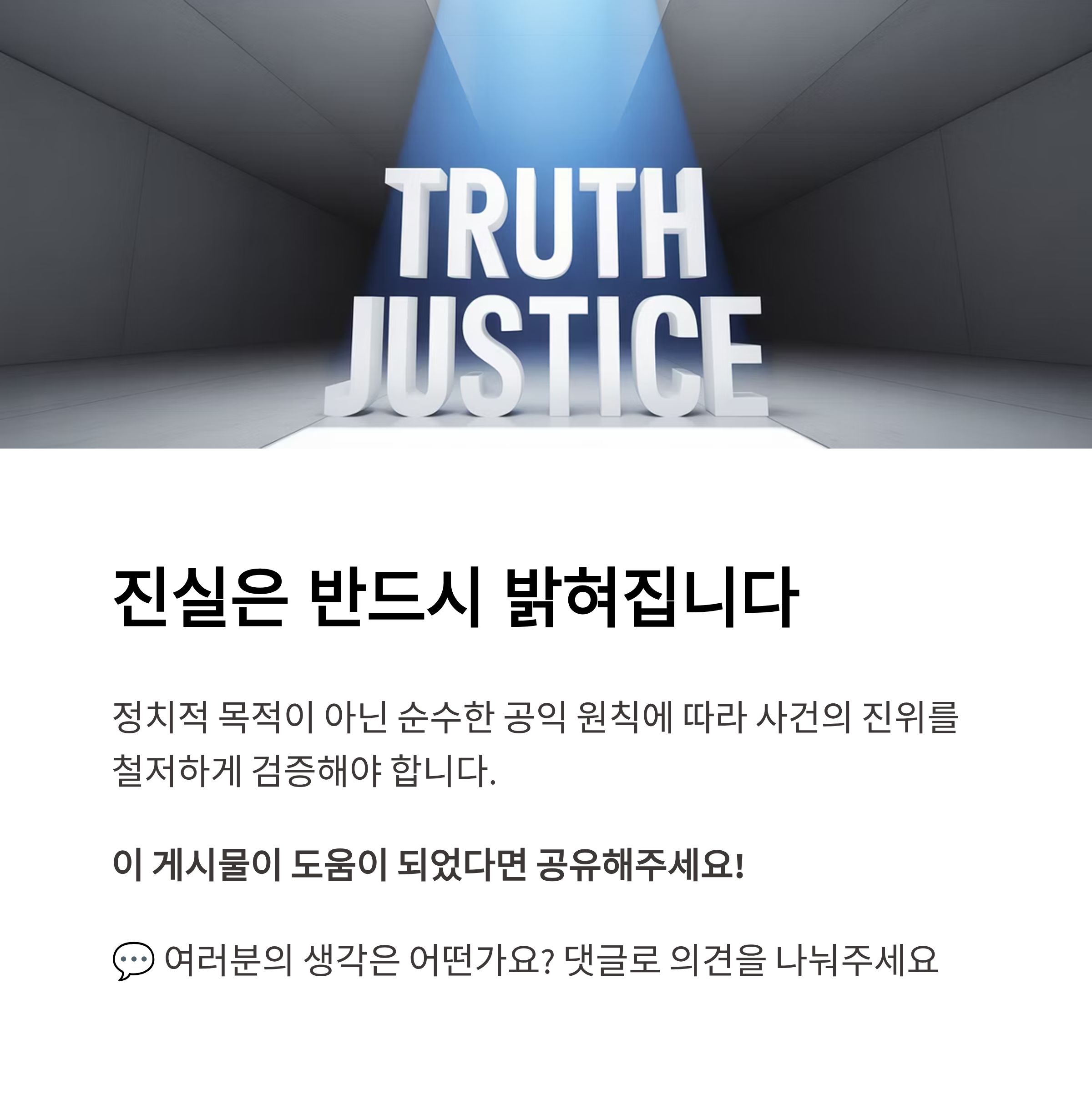 이번 사안은 대한민국의 민주주의와 법치주의의 기초를 시험하고 있습니다. 대중은 객관적이고 명확한 판단을 위해 절대적인 신뢰가 가지 않는 정보에는 신중해야 하며, 언론과 정부 또한 사실 기반의 공개적 조사를 통해 투명성을 보장해야 합니다. 이를 통해 진정으로 국민들의 신뢰를 회복할 수 있을 것입니다.