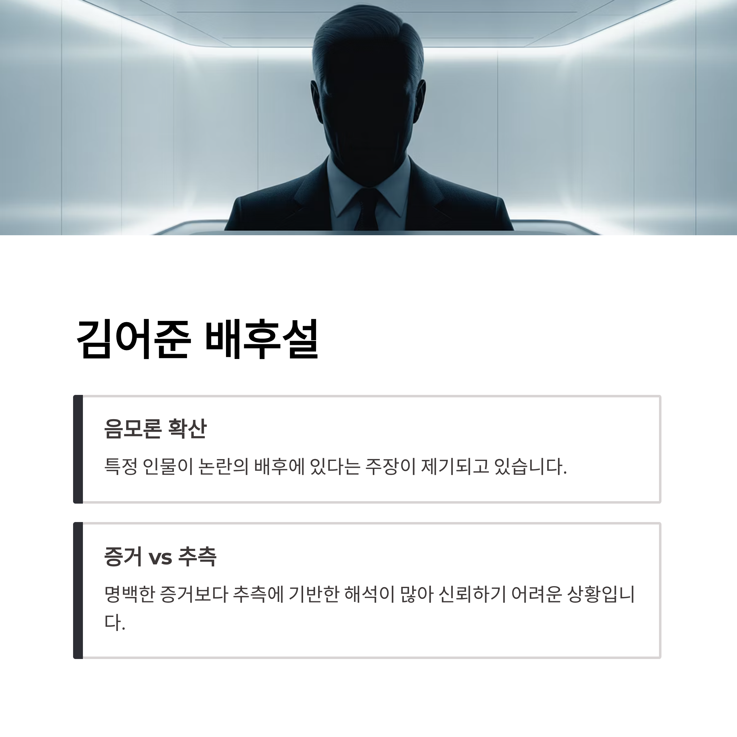 특히 김어준 등 특정 인물이 이 논란의 배후에 있다는 음모론이 제기되며 사건의 중심축이 더욱 확산되고 있습니다. 그러나 이는 명백한 증거보다 추측에 기반한 해석이 많아 신뢰할 만한 정보로 보기 어렵습니다. 대중이 혼란을 줄이기 위해선 객관적이고 실질적인 사실을 중심으로 판단해야 하며, 언론이 이를 중심으로 보도를 이어가야 합니다.