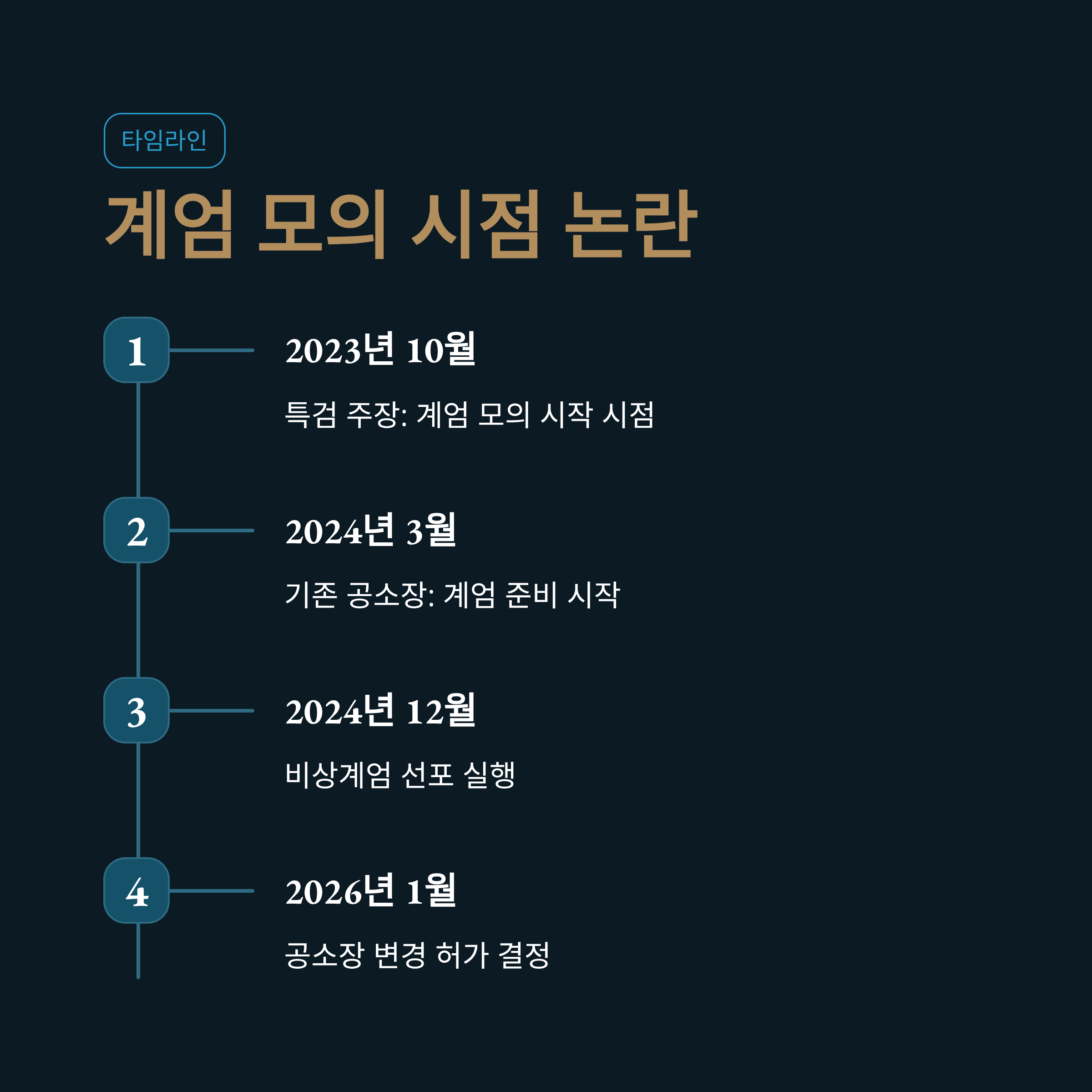 | A1. 준비 시점이 2024년 3월에서 2023년 10월로 앞당겨졌다는 것은, 비상계엄이 당시의 급박한 상황에 따른 우발적 결정이 아니라 정권 초기부터 계획된 '치밀한 내란 음모'였다는 특검의 주장을 재판부가 심리하겠다는 의미입니다. 이는 형량과 유무죄 판단에 결정적인 영향을 미칠 수 있는 중대한 변화입니다. |