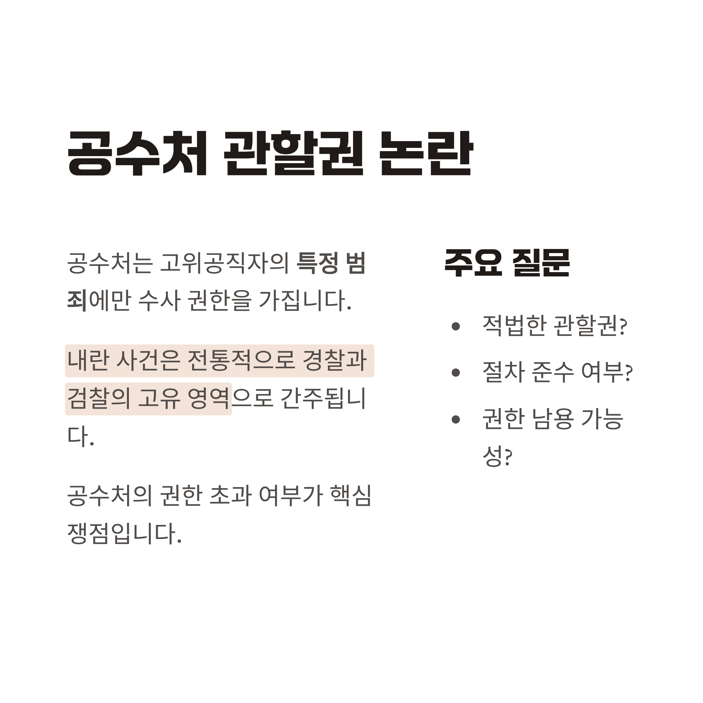 | Q. 공수처의 관할권 논란은 왜 중요한가요? |