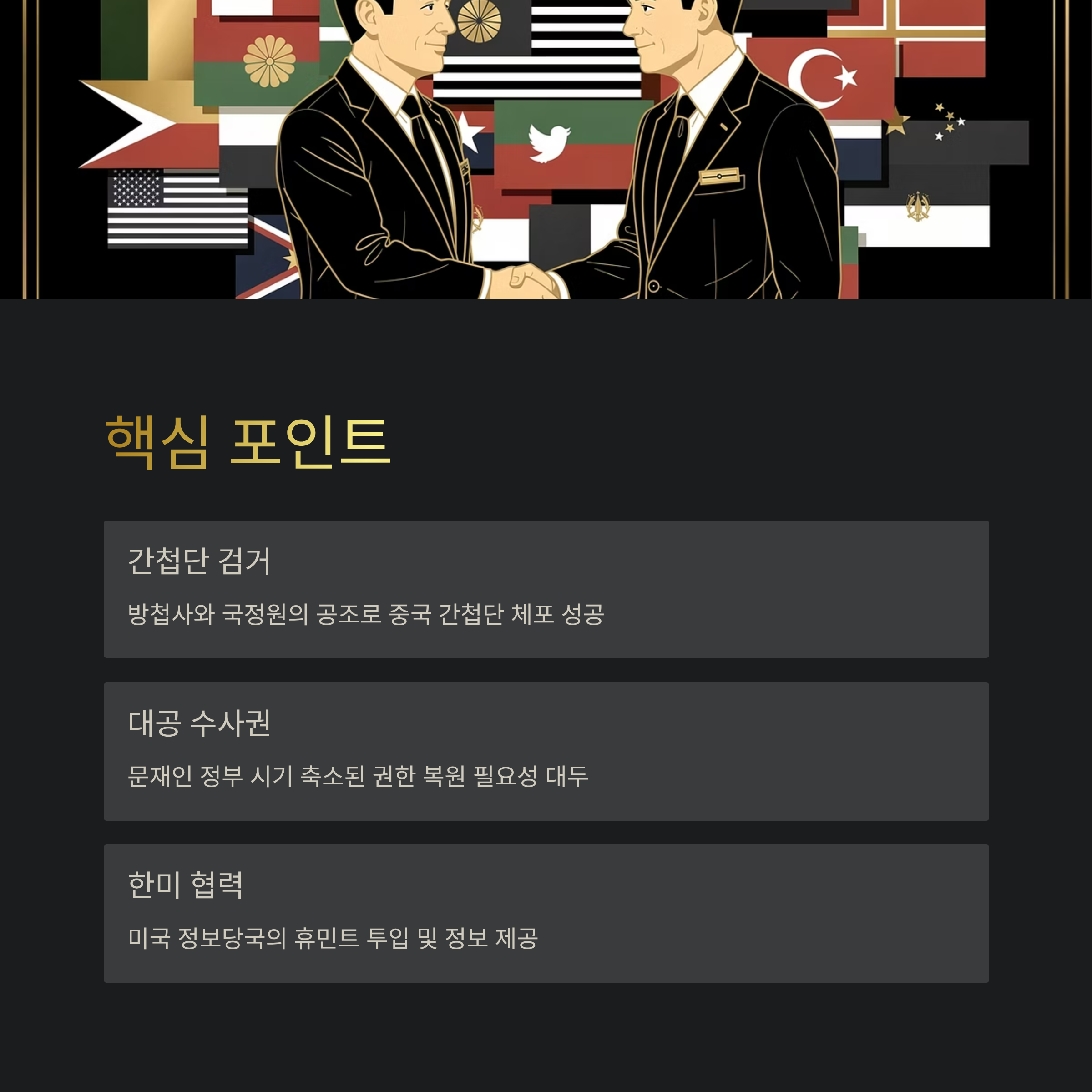 | Q. 최근 중국 간첩 검거는 국내외에서 어떤 의미를 가지나요? |