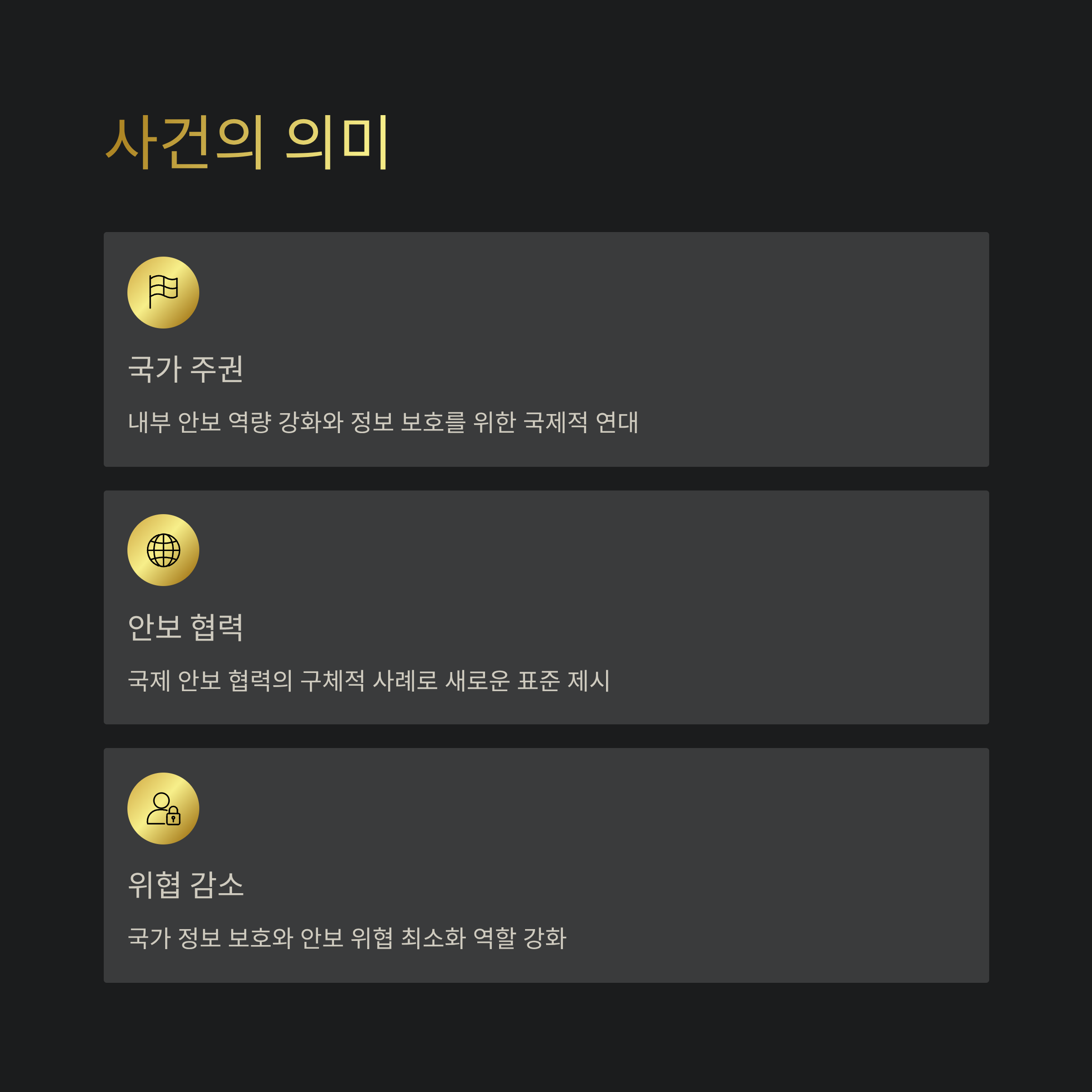 미국의 정보 제공뿐 아니라 검거된 용의자 일부가 미국으로 송치된 사례는 한미 간법률적 신뢰를 바탕으로 이루어진 조치로 해석된다. 이번 사건은 국제 정보 공유의 유용성을 입증하며, 앞으로도 이런 협력이 확대될 가능성을 암시한다.