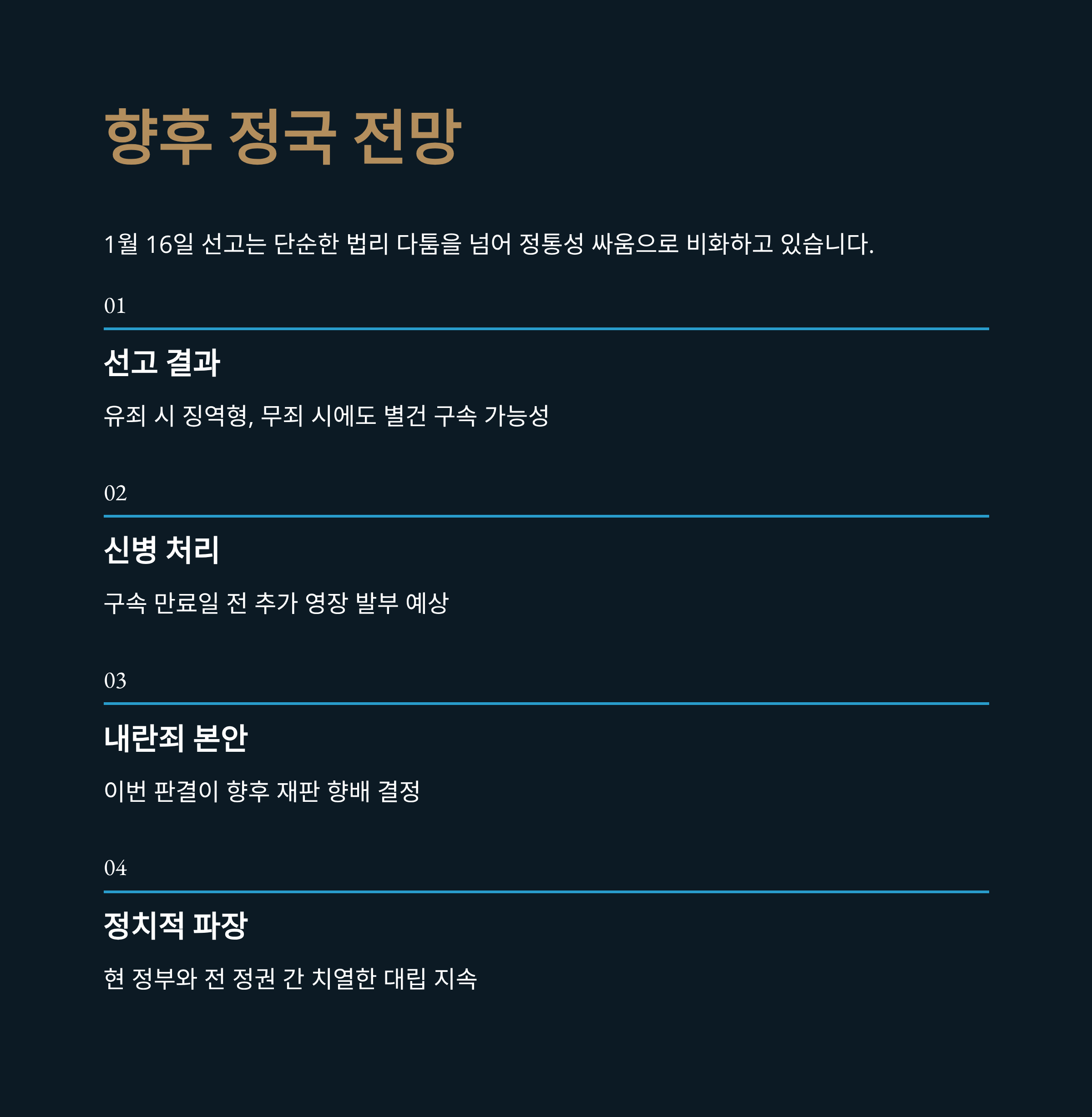 - 4. 결론: 1월 16일 선고의 의미와 향후 정국 전망