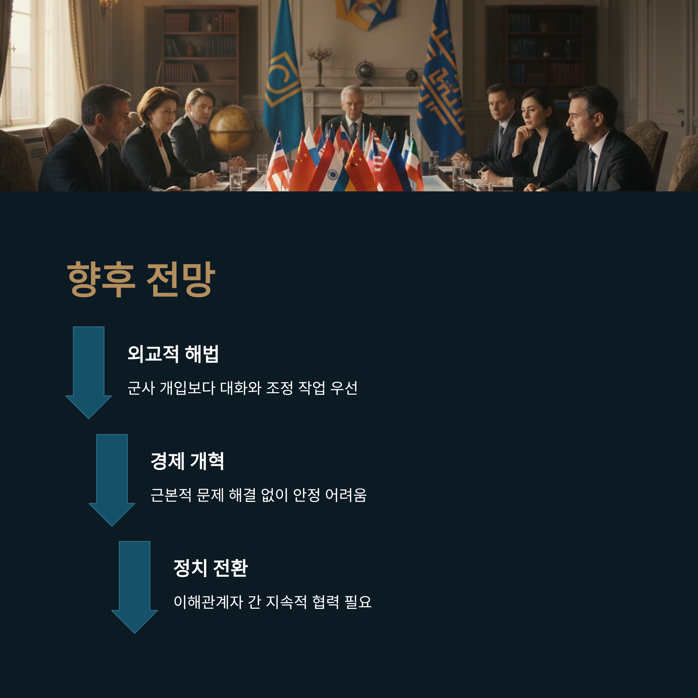 미국은 민주주의를 지지하는 명목으로 중동 지역의 안정화를 위한 공식적 대응 마련에 과감히 나서야 하지만, 이 역시 내부의 심각한 인도적 피해와 반발 가능성을 동반할 수 있습니다. 보수적 관점에서는 전통적 권위를 회복하고 국가 질서를 재정비하기 위한 기회로 삼기가 용이하겠지만, 이는 모든 국가적 이해관계자들이 지속적인 대화와 조정 작업 없이 실현하기 어려울 것입니다.
