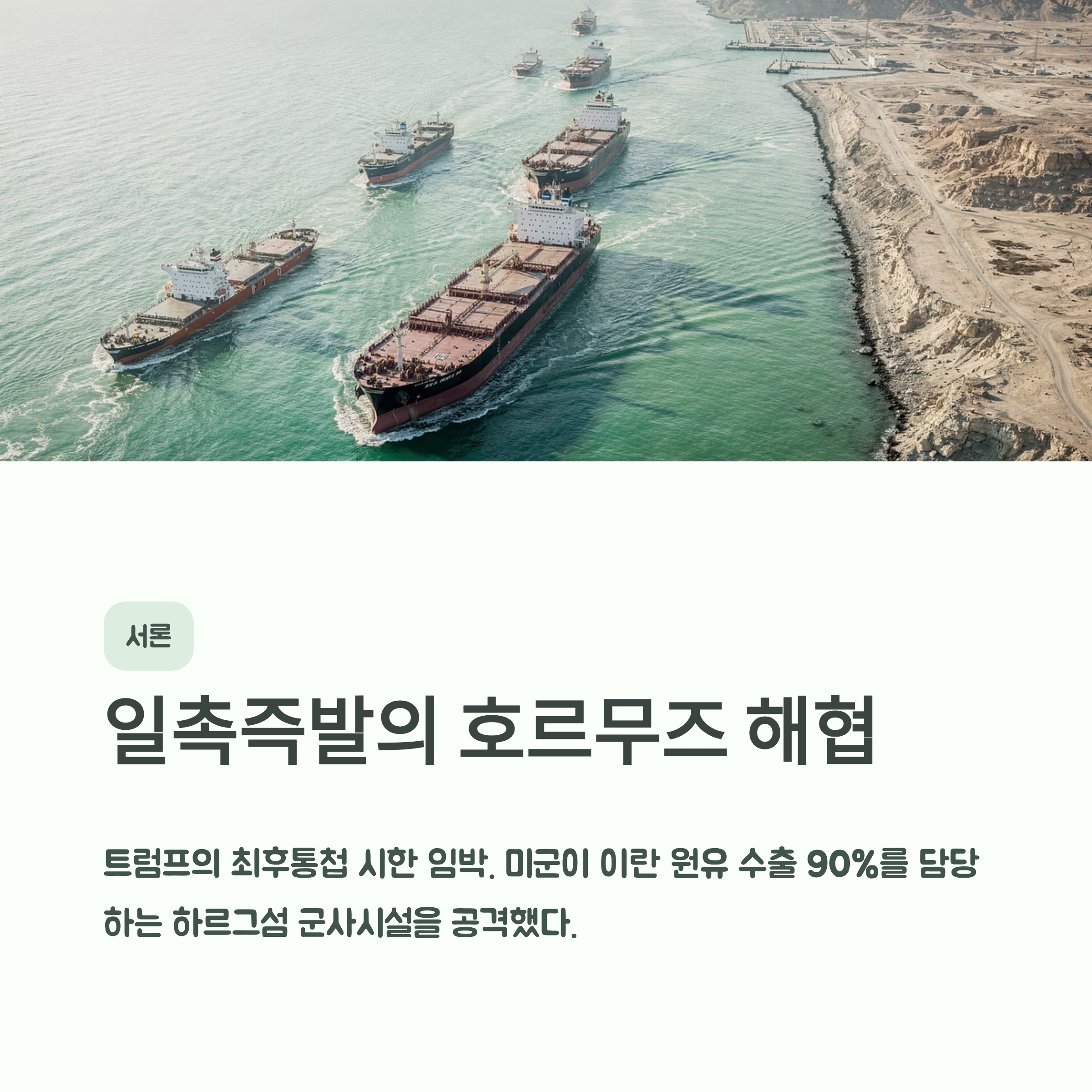 관련 태그: 미국이란갈등, 호르무즈해협, 트럼프, 이란공격, 중동위기, 최후통첩, 석기시대, 이란전쟁, 국제유가, 군사적충돌