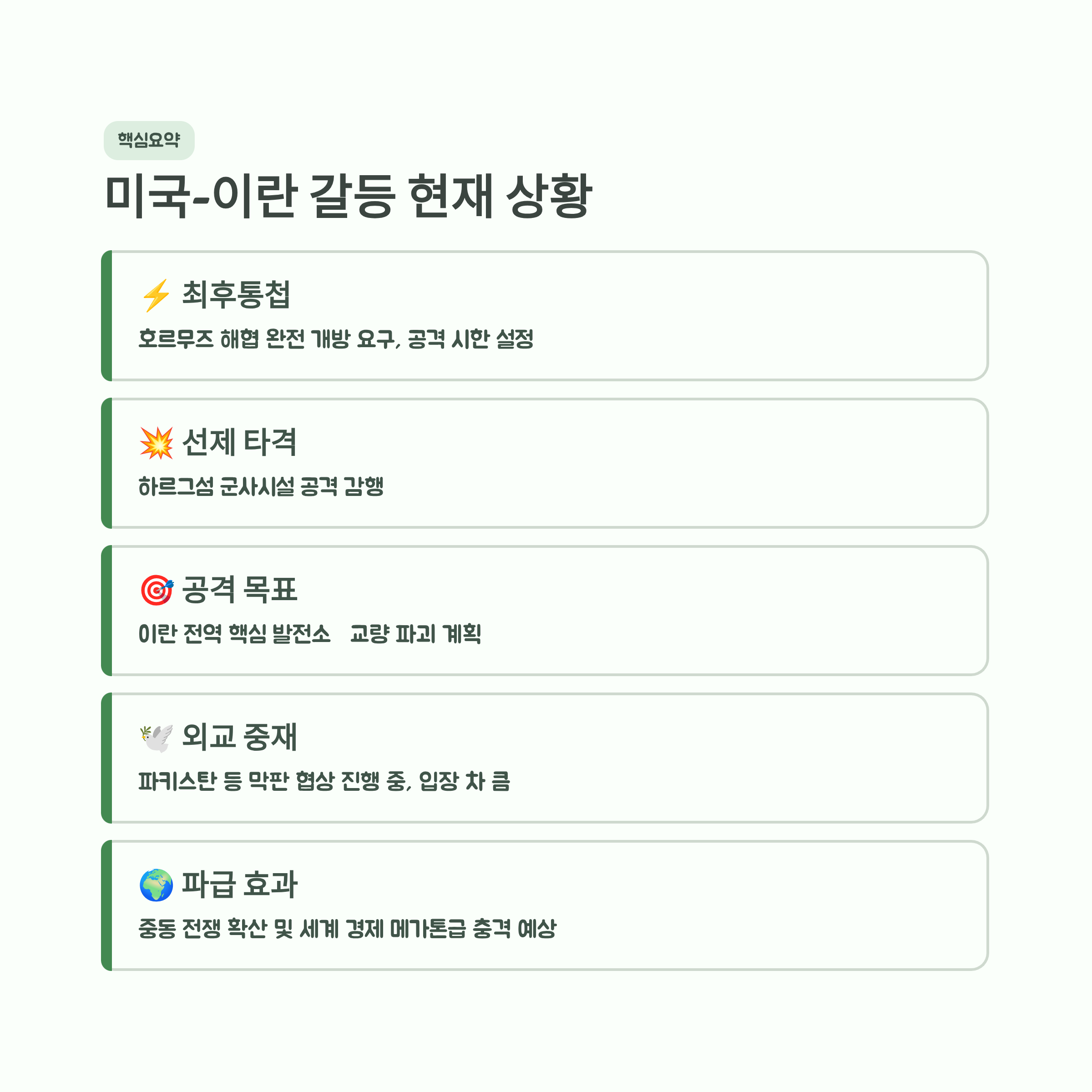 - 핵심요약: 미국-이란 갈등의 현재 상황