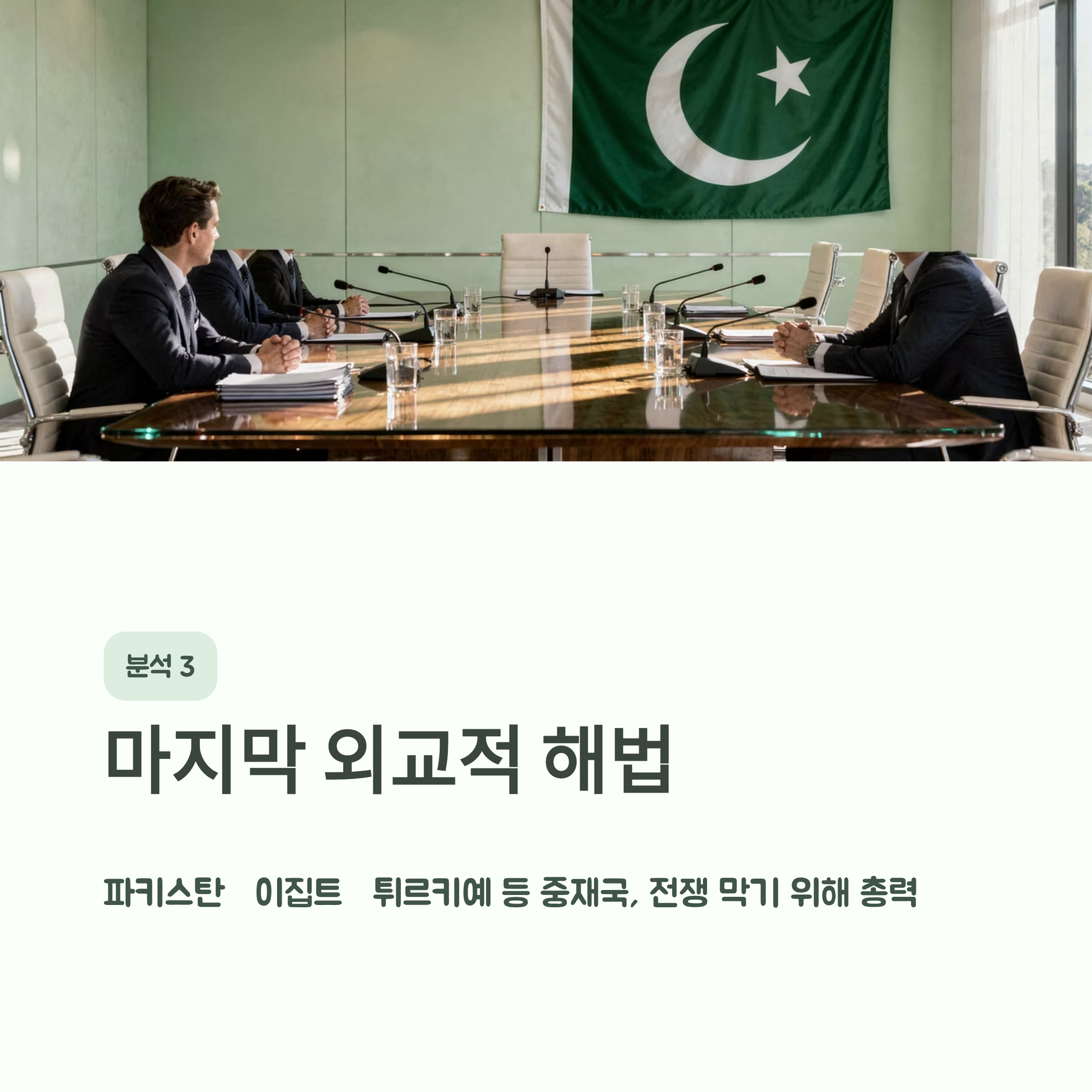 외교적 중재: 파키스탄 등을 중심으로 막판 협상이 진행 중이나 양측의 입장 차이가 큽니다.