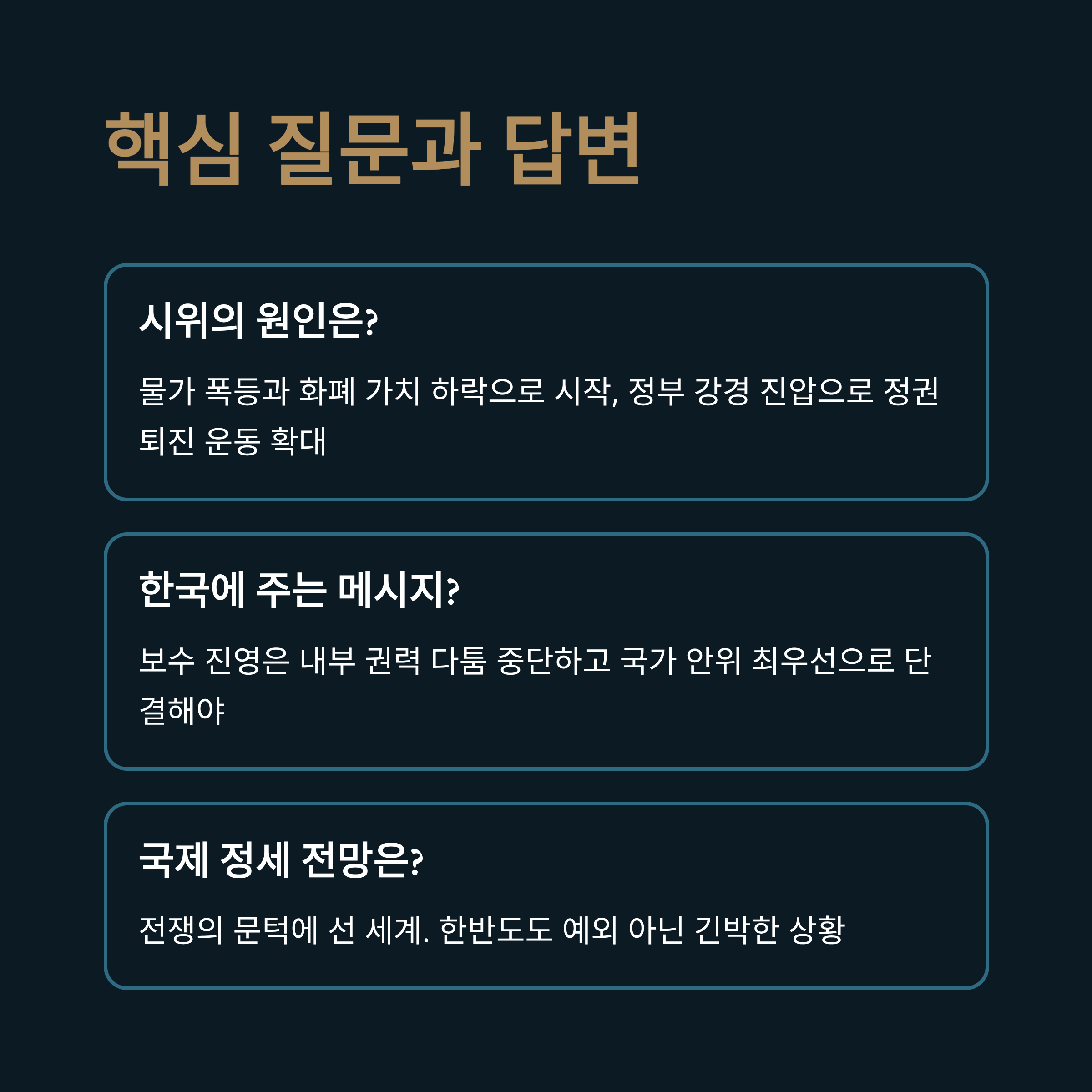 | Q. 이 사태가 한국 정치권에 주는 메시지는 무엇인가요? |