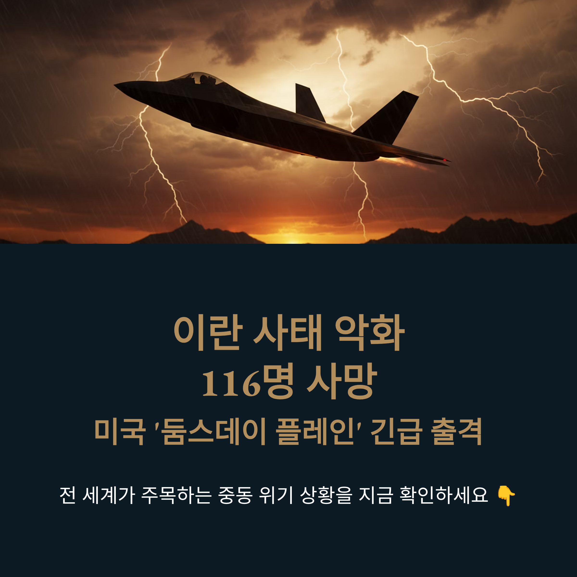 이란 사태 악화 116명 사망, 미국 전쟁 준비 '둠스데이 플레인' 떴다 (2026.1.11)