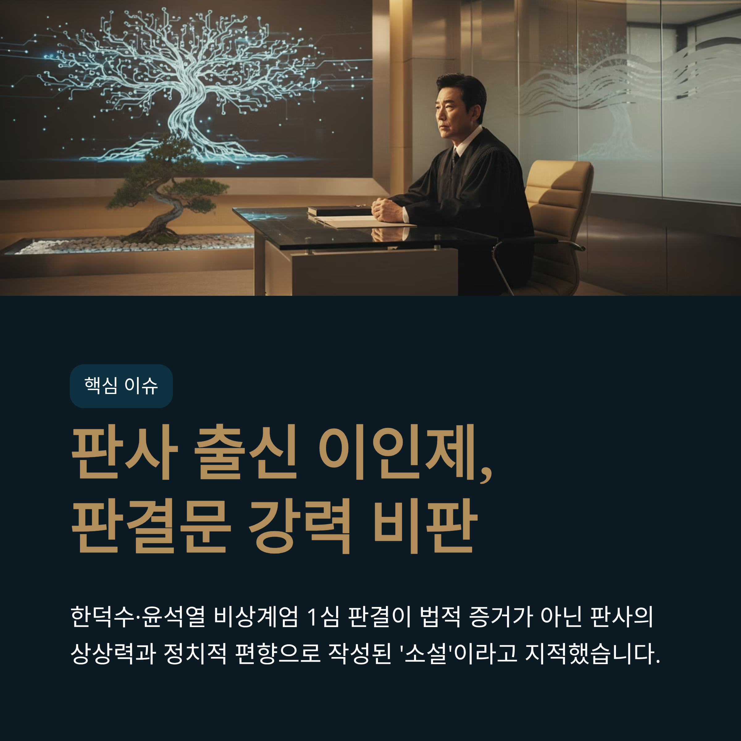 - 판결의 본질 왜곡: 판사는 냉혹한 이성으로 증거에 입각해 판결해야 함에도, 이번 판결은 '뜨거운 감성'과 '상상력'으로 채워진 소설에 불과합니다.