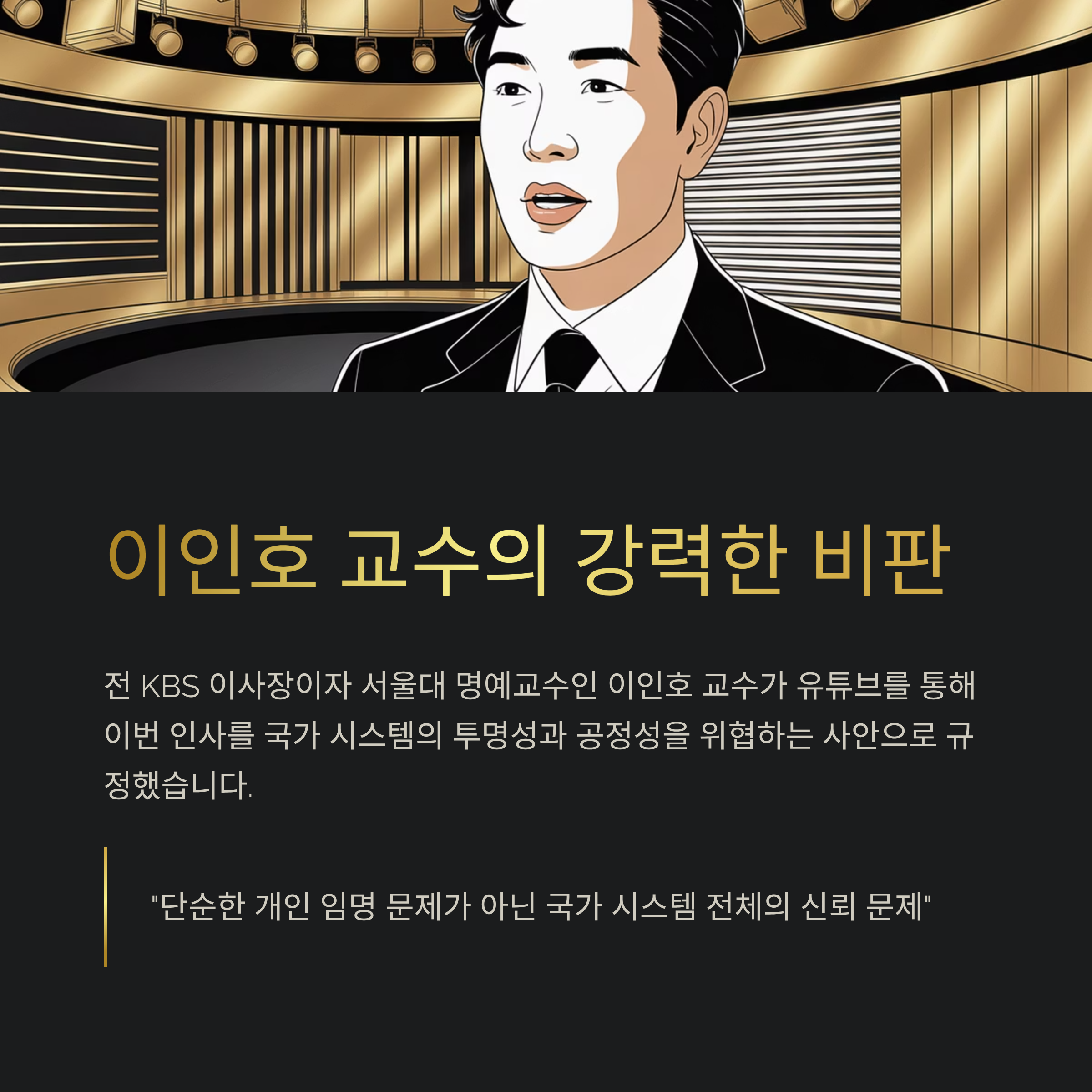 이인호 교수는 이를 이재명 정권의 구조적 문제로 보고, 강도 높은 비판을 제기했습니다.