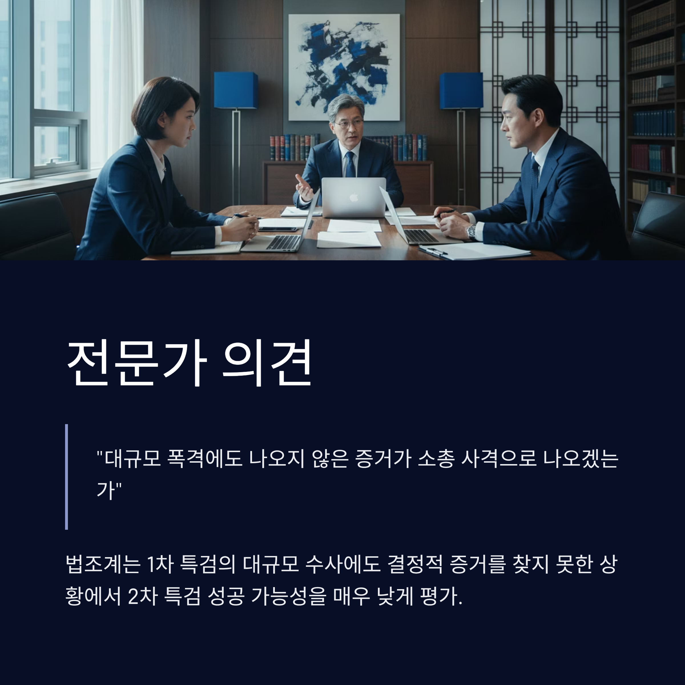 2차 특검 회의론: 이미 1차에서 먼지 털기식 수사로 증거가 고갈된 상태에서, 동일 사안에 대한 2차 특검은 정치적 구호에 불과하다는 지적이 많습니다.