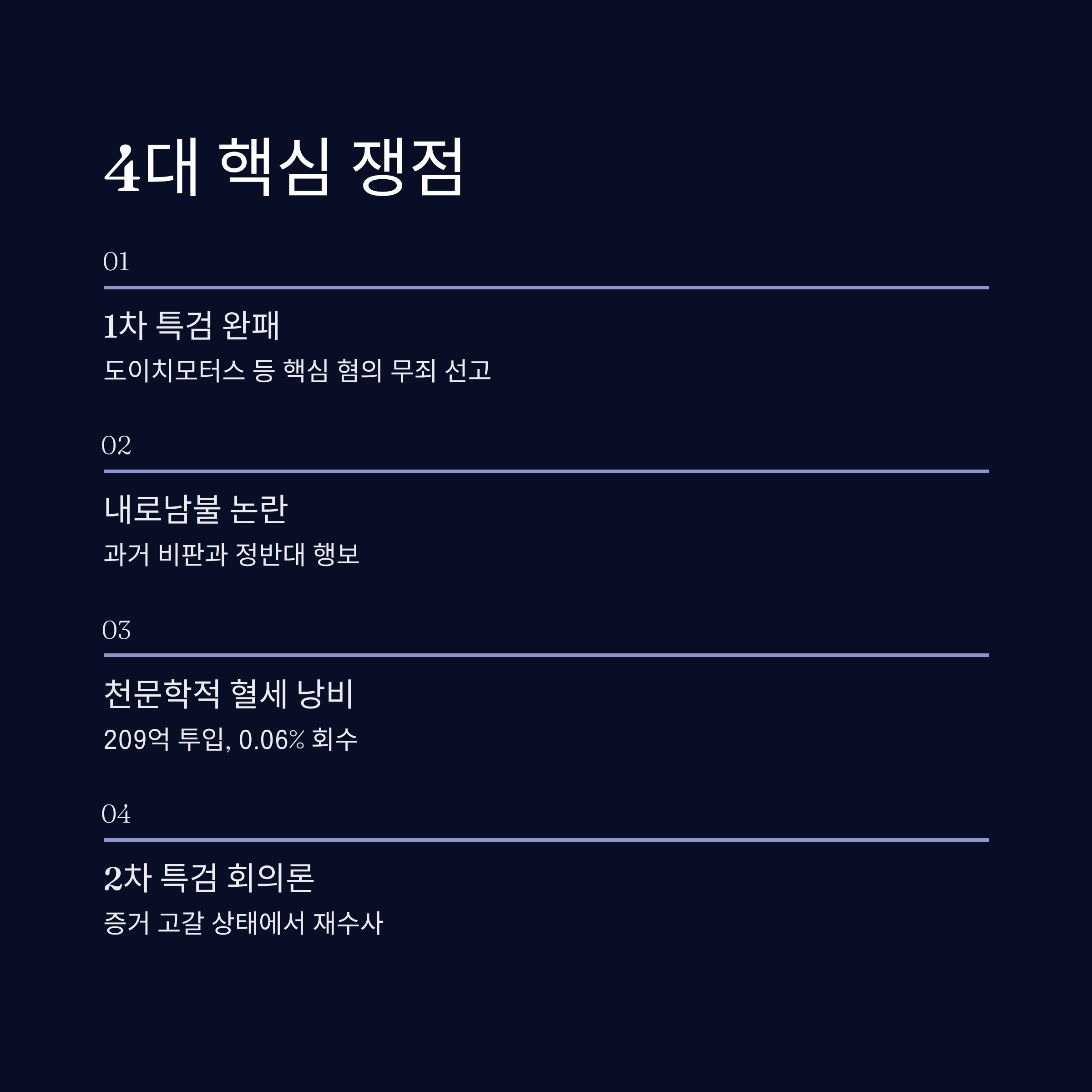 내로남불 논란: 이재명 대통령은 과거 검찰의 무리한 항소를 "괴롭히기"라고 비난했으나, 본인 정권 하의 특검은 전면 항소를 강행하는 모순을 보였습니다.
