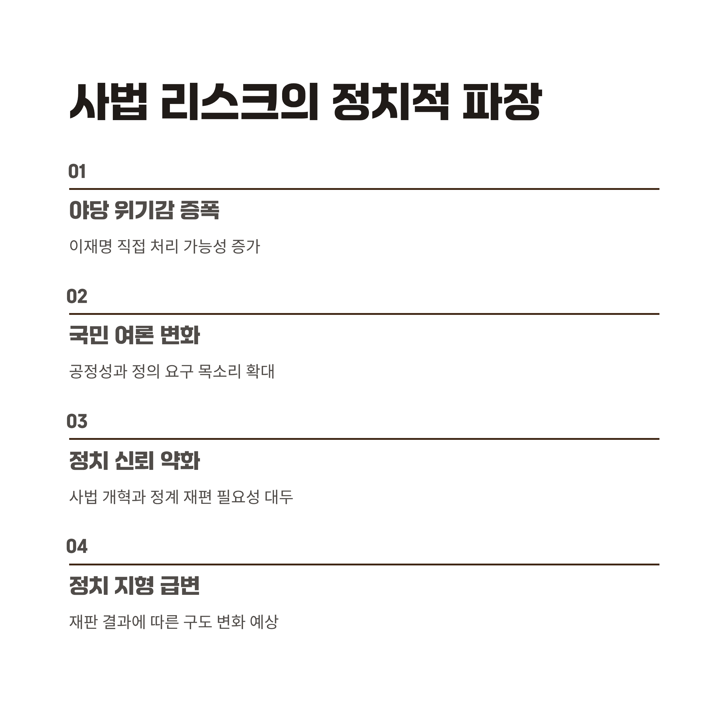 | Q. 향후 재판 결과는 어떠한 정치적 파장을 미칠까요? |