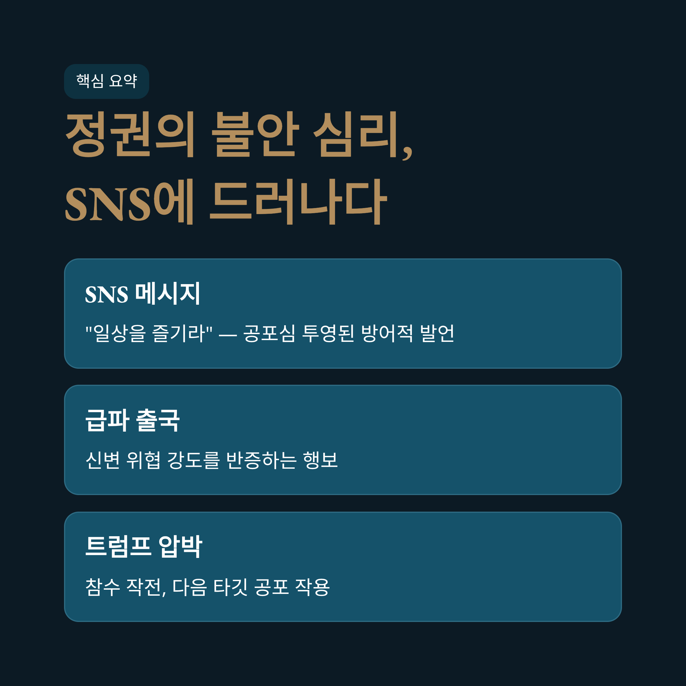 - 2. 핵심요약: SNS 메시지와 국제 정세 속 드러난 정권의 불안 심리