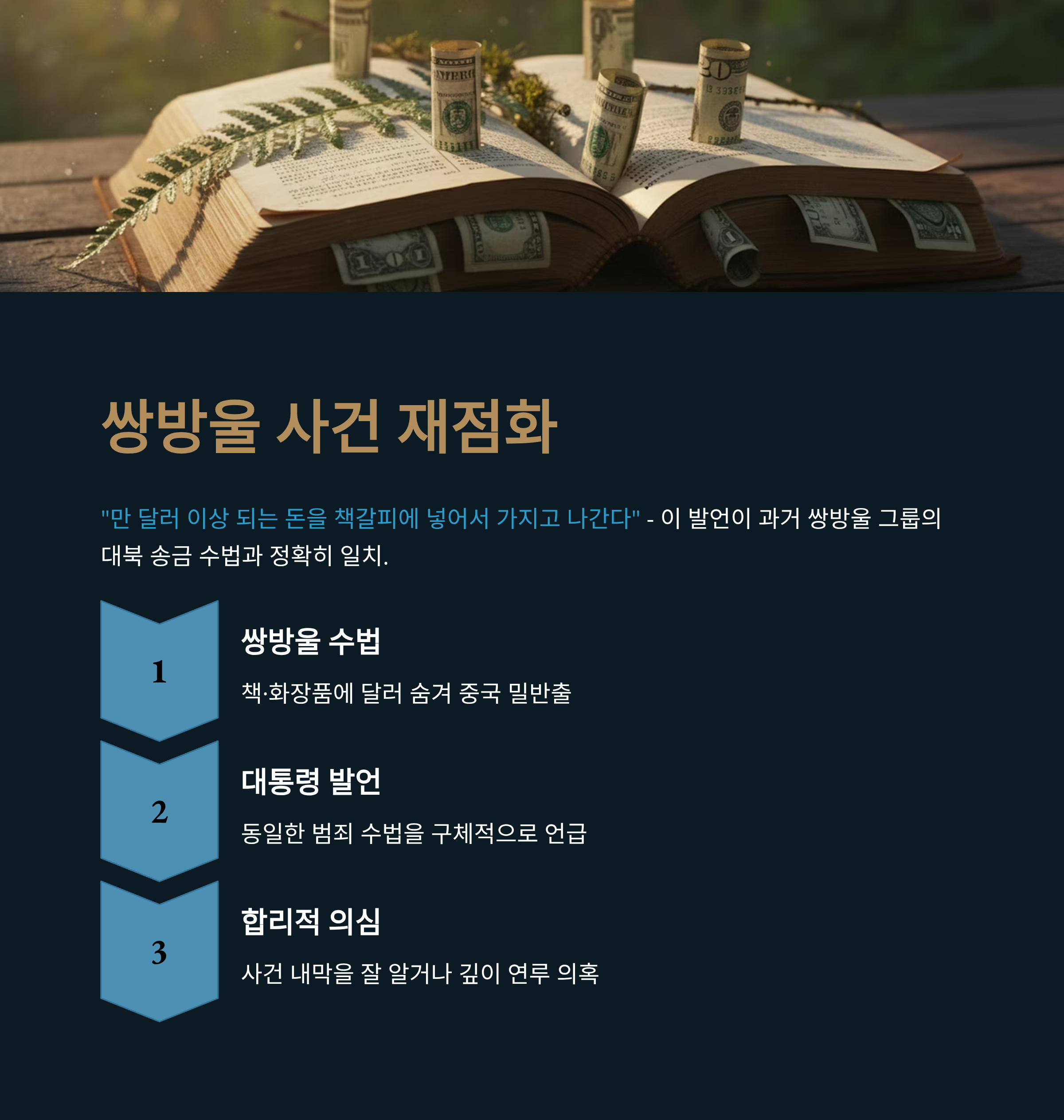 | Q2. '책갈피 달러 밀반출' 발언이 왜 그렇게 중요한가요? |