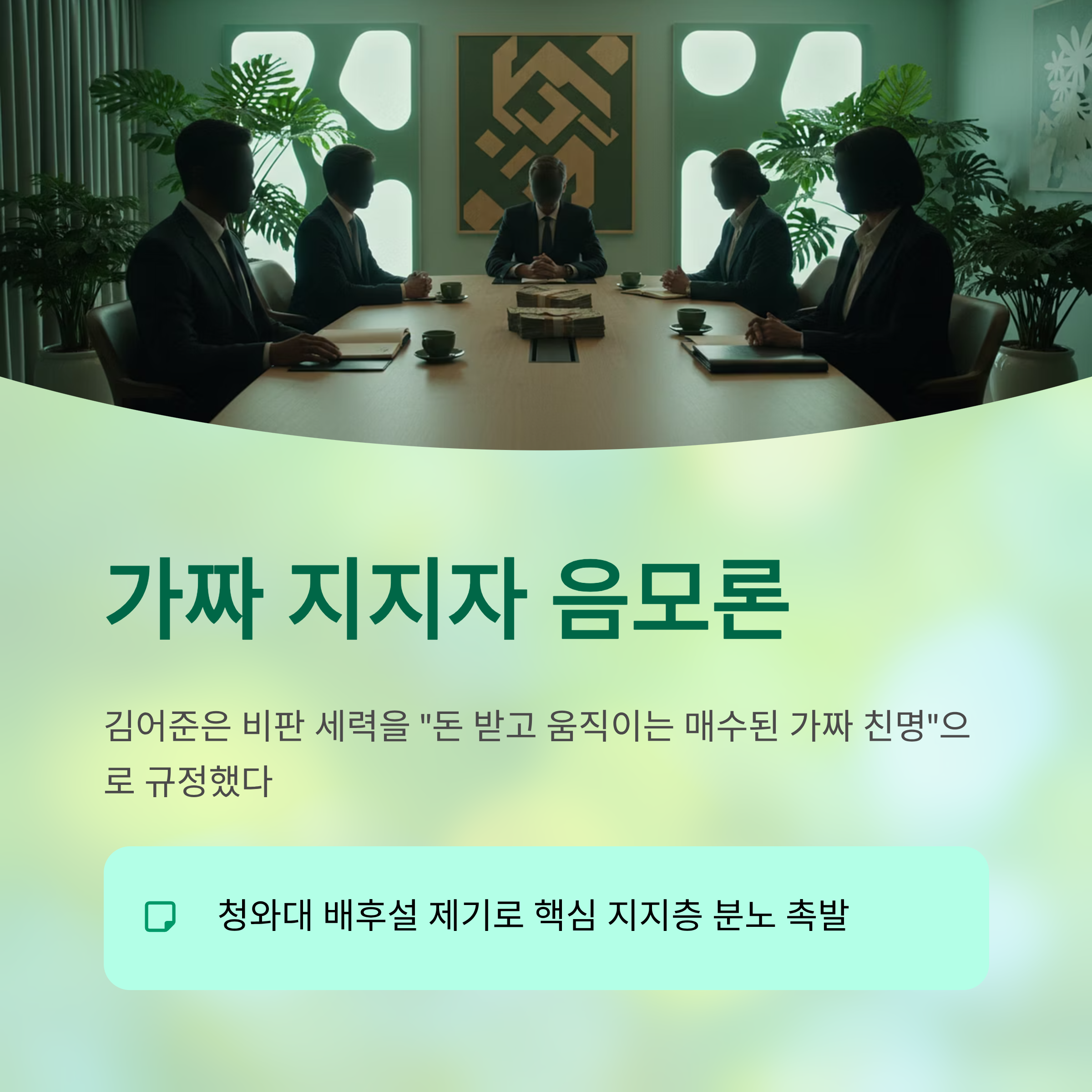 김어준 씨가 제기한 '가짜 지지자' 음모론은 진영의 단합보다는 자신의 스피커 권력 유지를 위한 위험한 도박에 가깝습니다. 그는 현재 자신과 정청래 대표를 향한 비판 여론이 "청와대가 배후에서 돈으로 조종하는 조직적인 공작"이라고 주장하며, 구체적인 증거 없이 의혹을 부풀렸습니다. 이러한 주장은 과거 이재명 대통령이 경기지사 시절 겪었던 강성 팬덤 관리의 어려움을 교묘하게 이용한 것이지만, 현직 대통령의 핵심 지지층인 '개딸' 전체를 매수된 세력으로 매도하는 치명적인 실책입니다. 이는 결국 자발적 지지자들의 순수성을 모욕하고, 친명계 유튜버들과 지지층의 거센 반발을 초래하며 김어준 스스로를 고립시키는 자충수가 되고 있습니다.