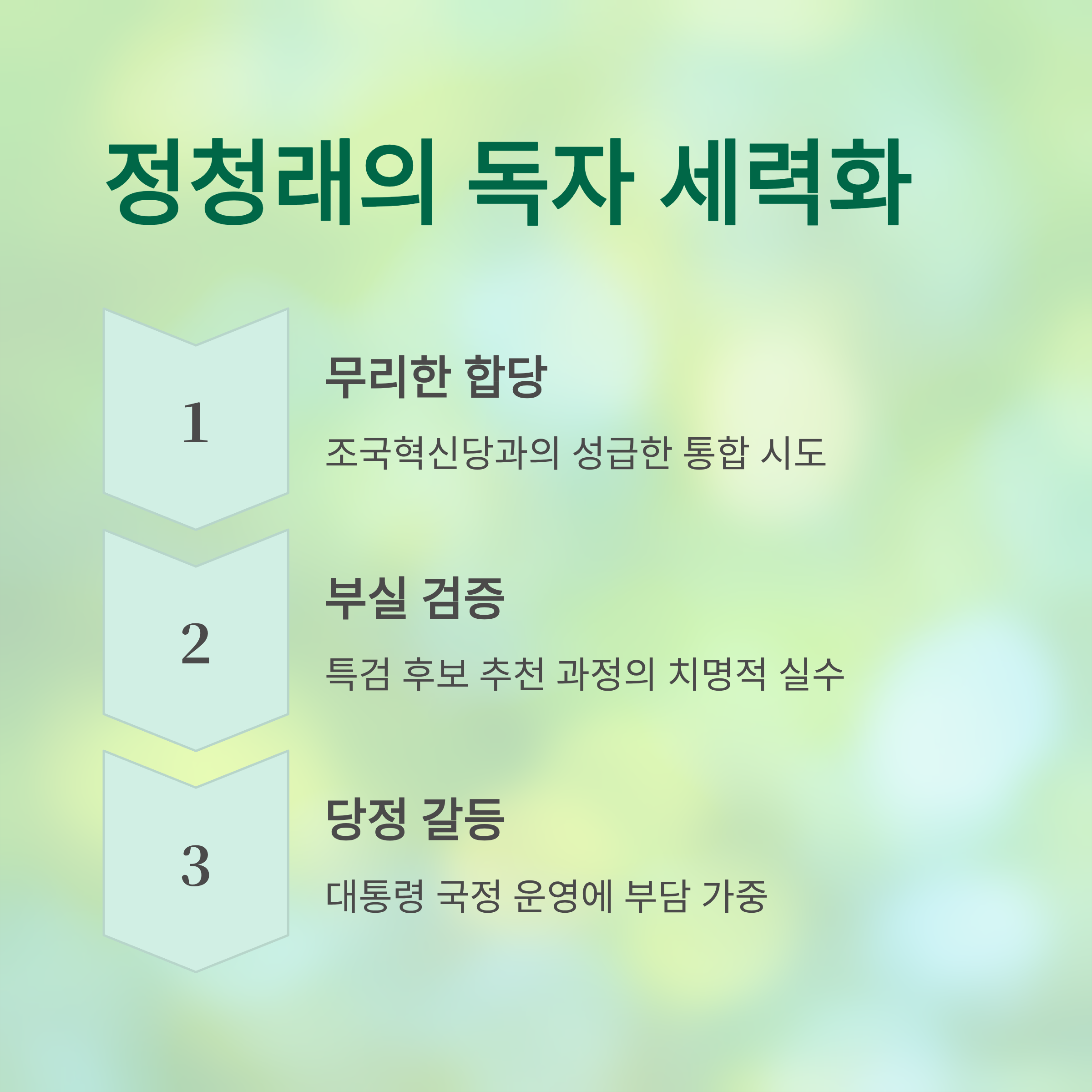 이는 정청래 대표의 특검 추천 실패와 합당 무산에 대한 비판 여론을 잠재우고 책임을 외부로 돌리려는 시도로 풀이됩니다.