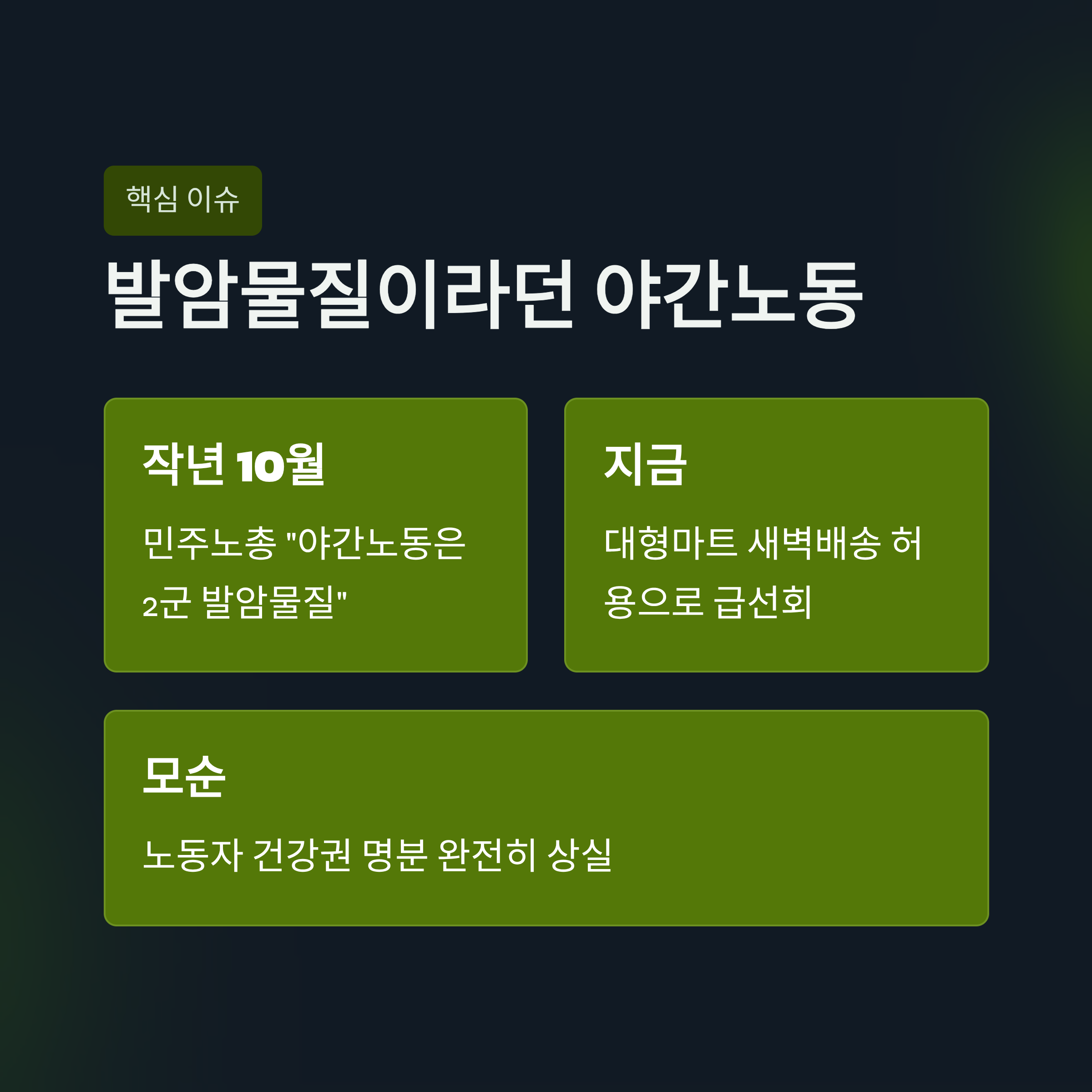- 3. 심층분석 1: 발암물질이라던 야간노동, 대형마트엔 허용된 이유