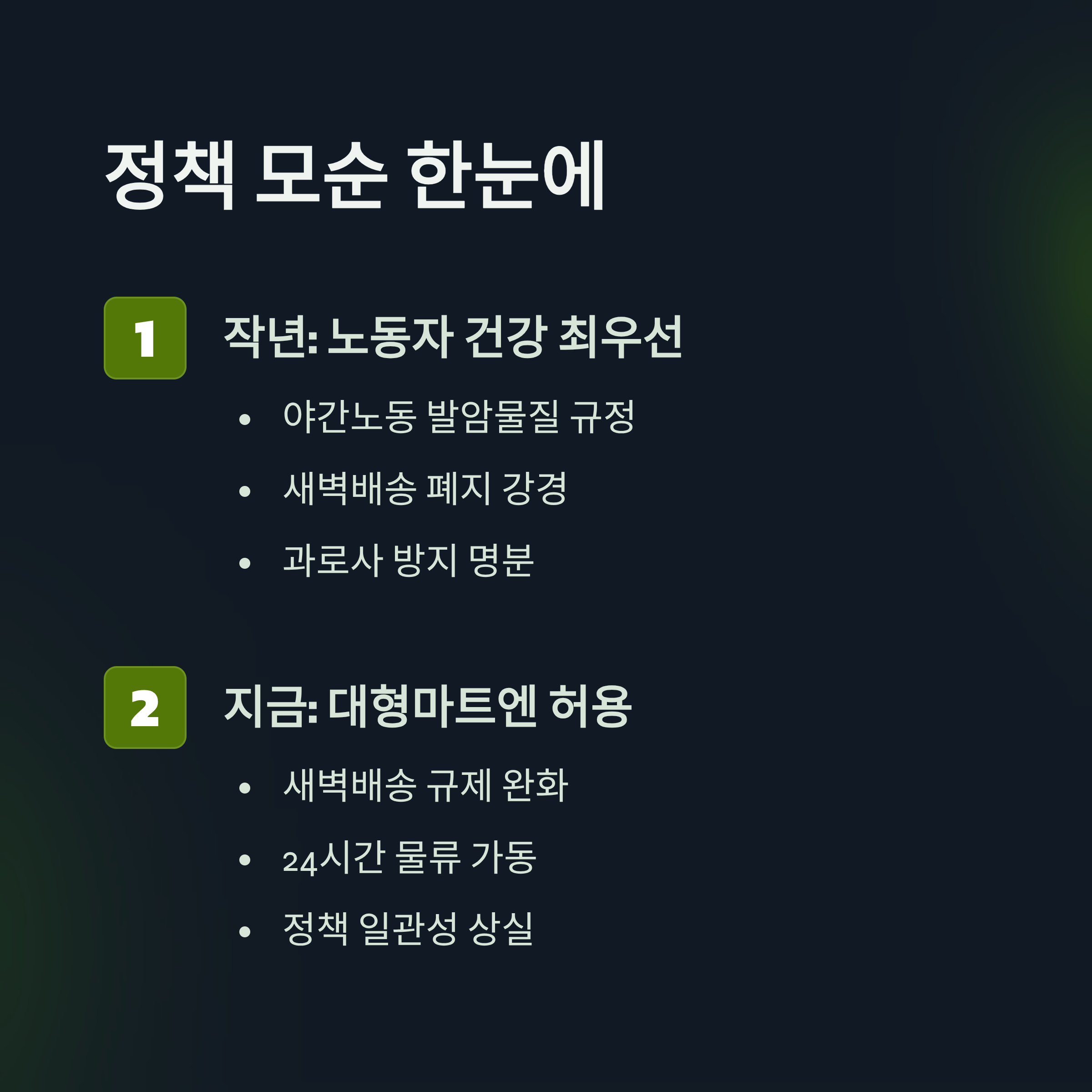 핵심요약: 새벽배송 정책 모순 한눈에 보기