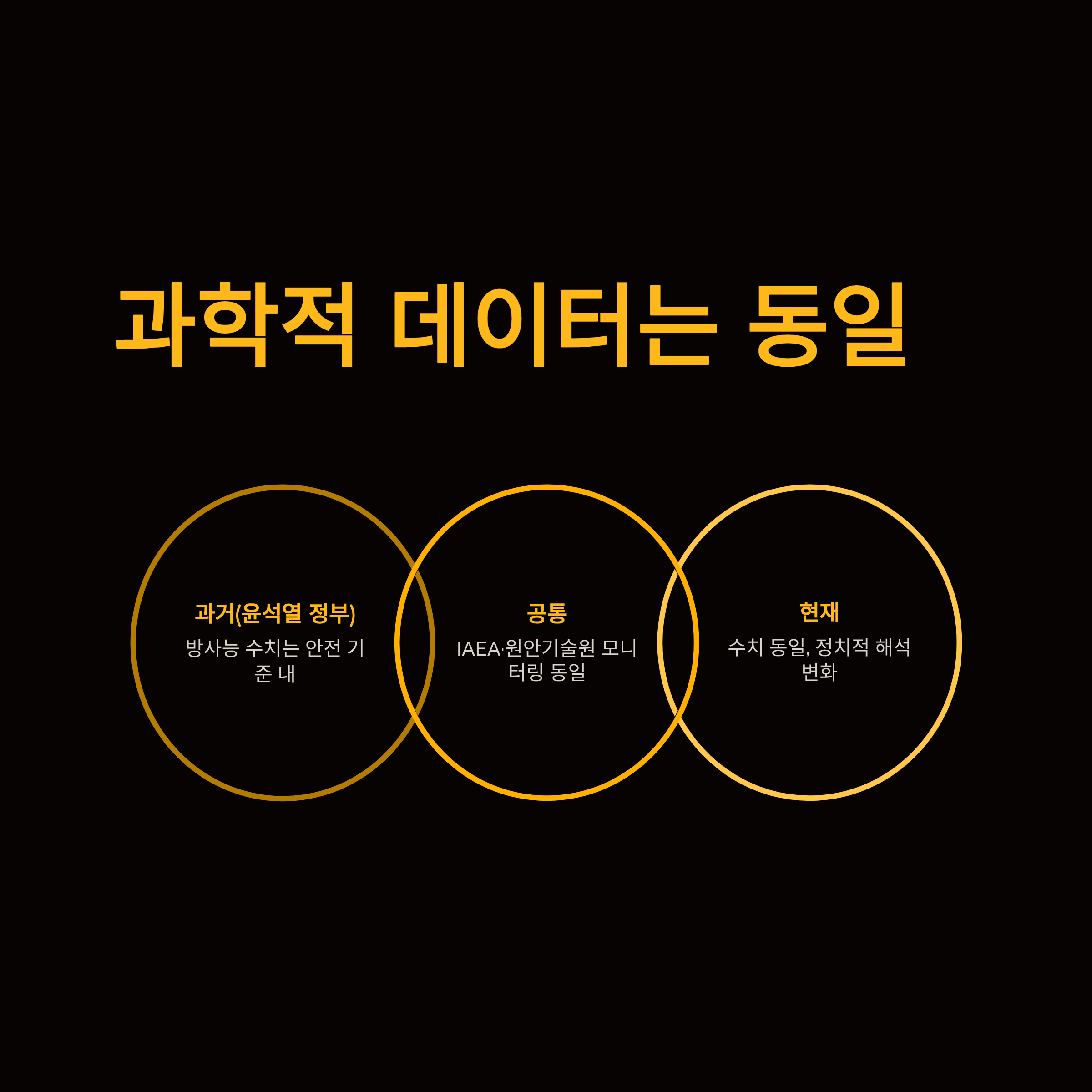 과학적 근거의 동일성: 외통위 질의에서 지적되었듯, IAEA와 한국 원자력안전기술원의 모니터링 결과는 과거 윤석열 정부 시절이나 현재나 안전 기준치 내로 동일합니다. 과학적 사실은 변하지 않았으나 정치적 해석만 달라진 것입니다.