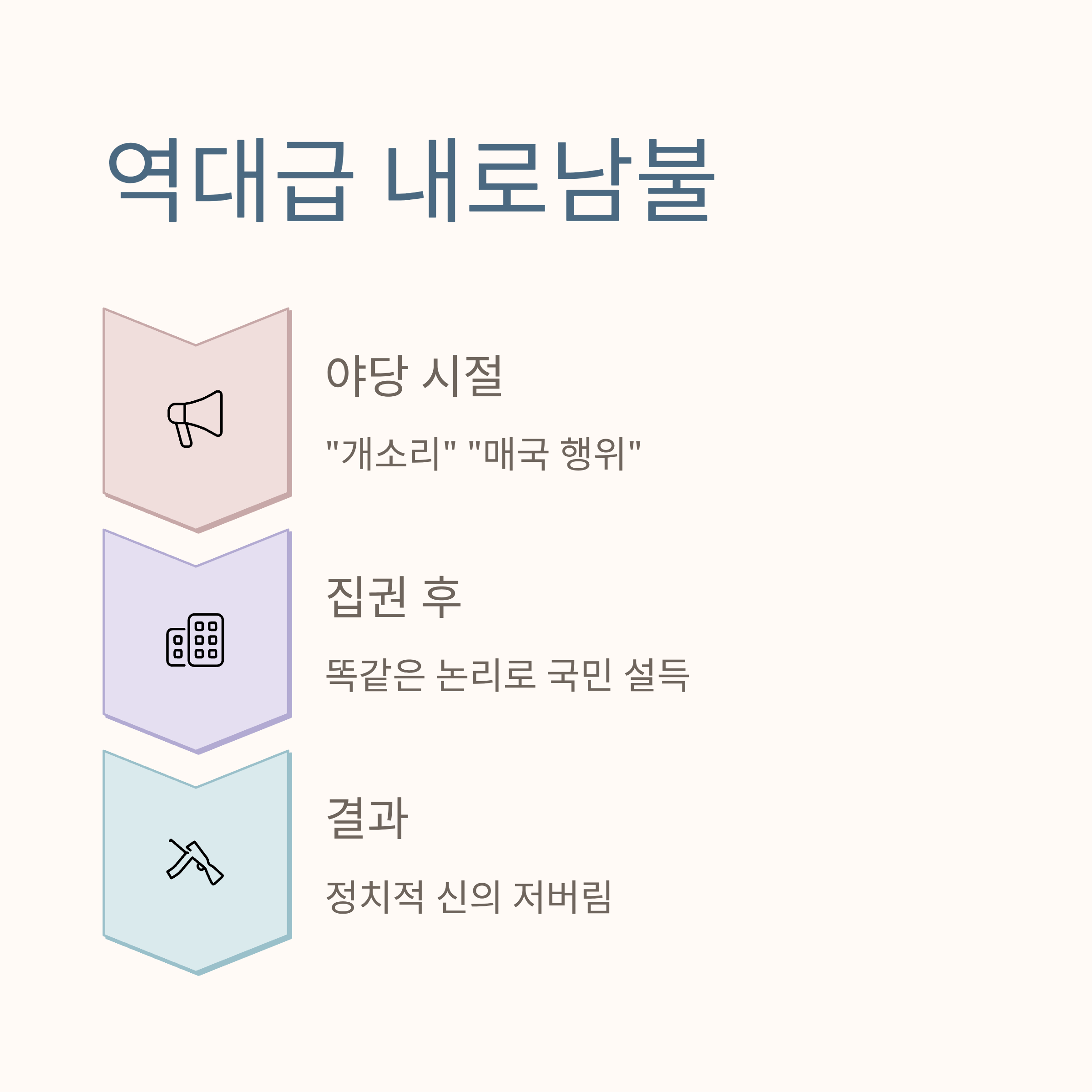 경제적 실리와 저자세 외교 논란: 결국 국익과 현실 경제 논리 앞에서 과거 자신들이 '개소리'라고 치부했던 주장을 굽히고 일본의 요구에 순응하는, 자신들이 그토록 비판했던 '저자세 외교'를 답습하고 있다는 비판에 직면했습니다.