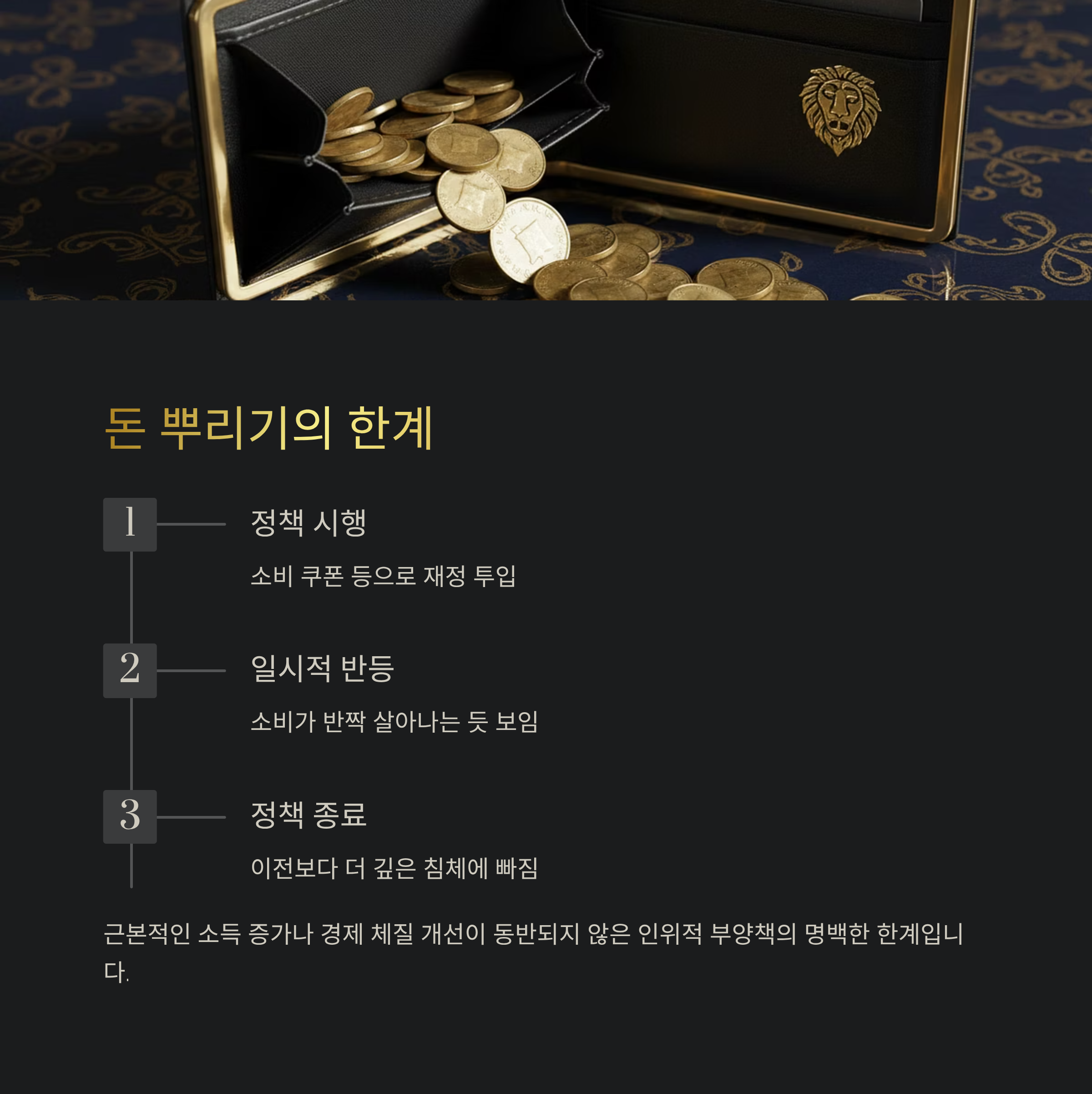 정부가 소비 쿠폰 등으로 시중에 직접 돈을 푸는 정책은 이미 그 한계가 명확히 드러났습니다.