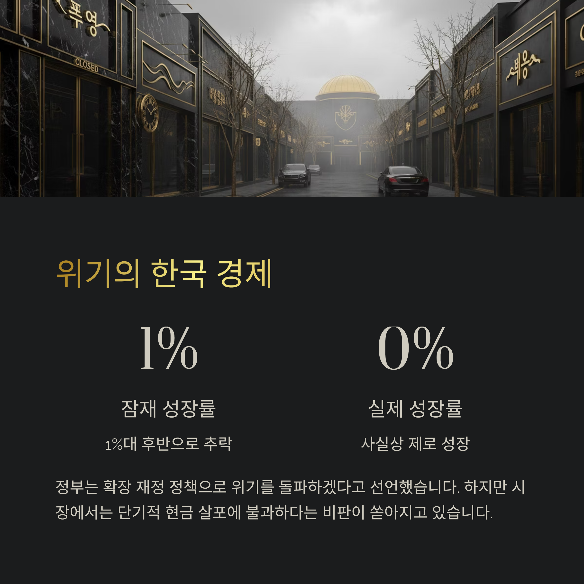 현재 정부가 추진하는 확장 재정 기조는 저성장이라는 병의 원인을 치료하는 것이 아니라, 일시적인 고통만 잊게 하는 진통제 처방과 같습니다.