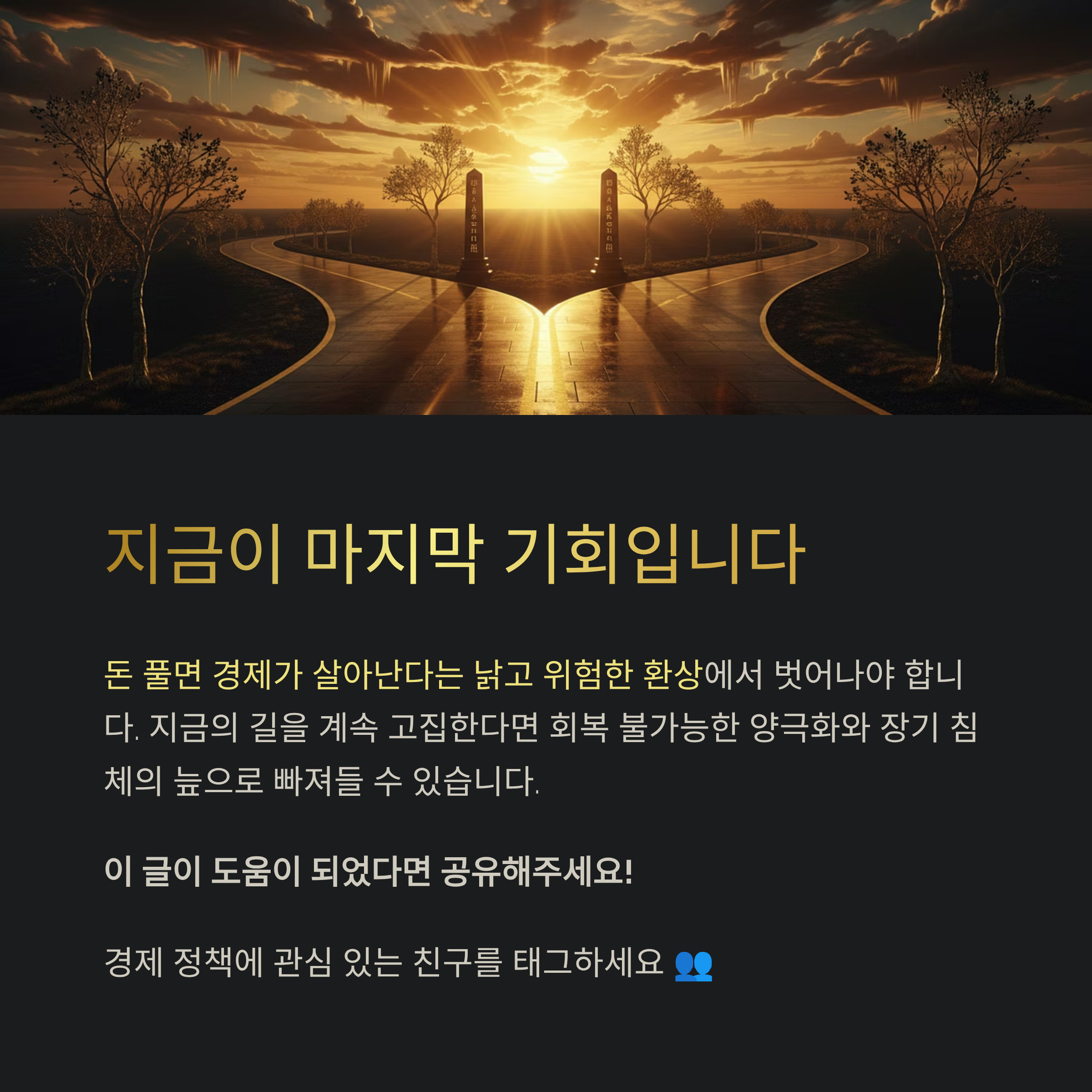 이제라도 '돈 풀면 경제가 살아난다'는 낡고 위험한 환상에서 벗어나야 합니다.