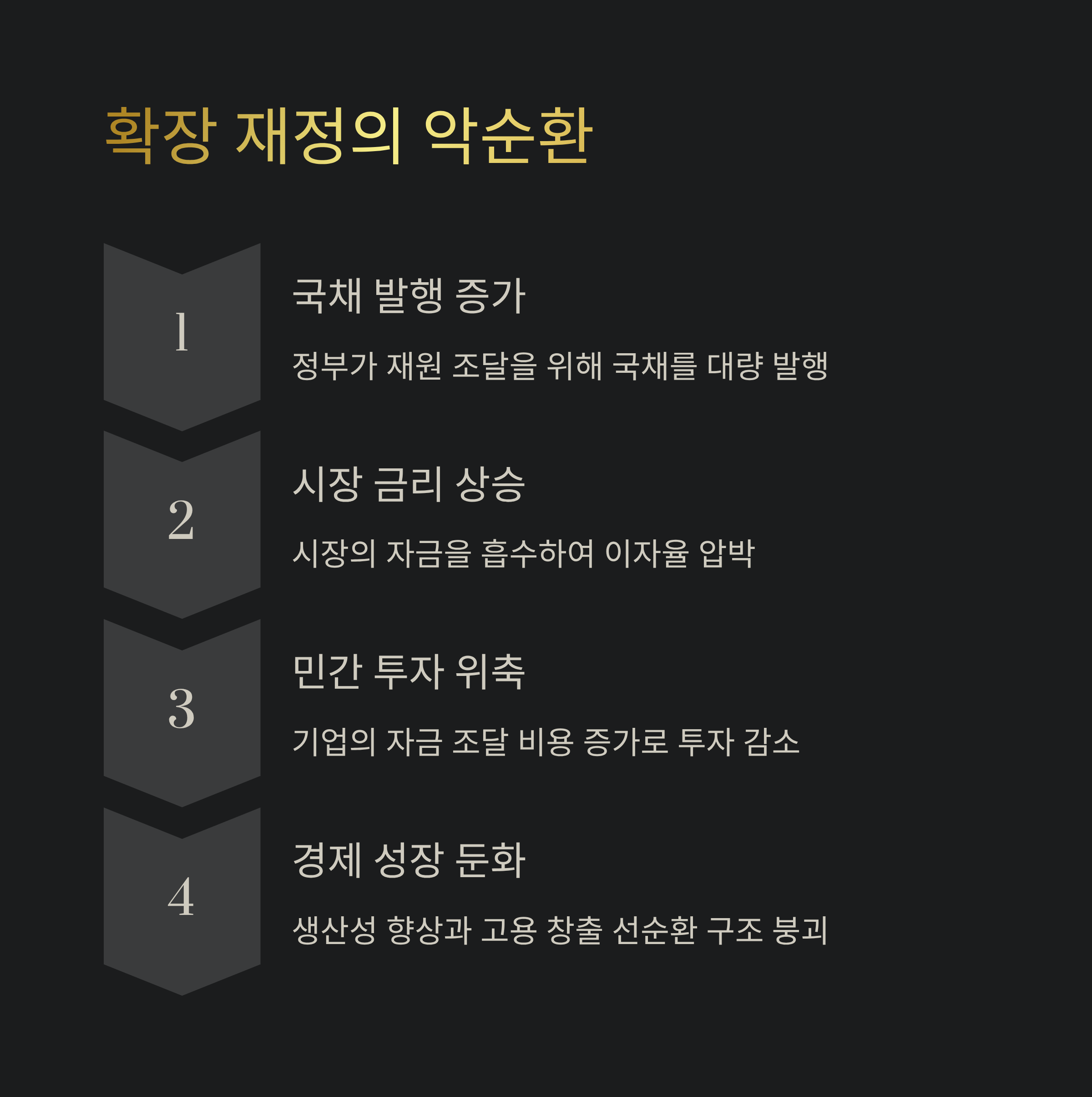 | 핵심 문제 | 과도한 국채 발행 → 시장 금리 상승 → 민간 투자 위축 (구축 효과) |