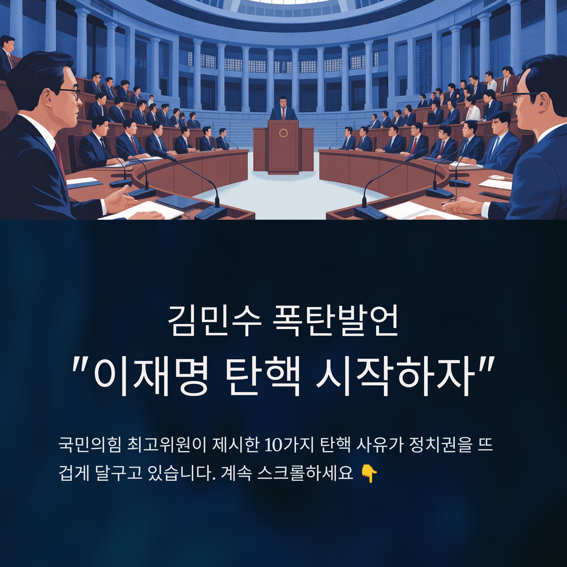 1. 김민수 최고위원은 이재명 탄핵의 필요성을 10가지 이유로 명확히 제시하며 정치적 쟁점으로 상승.