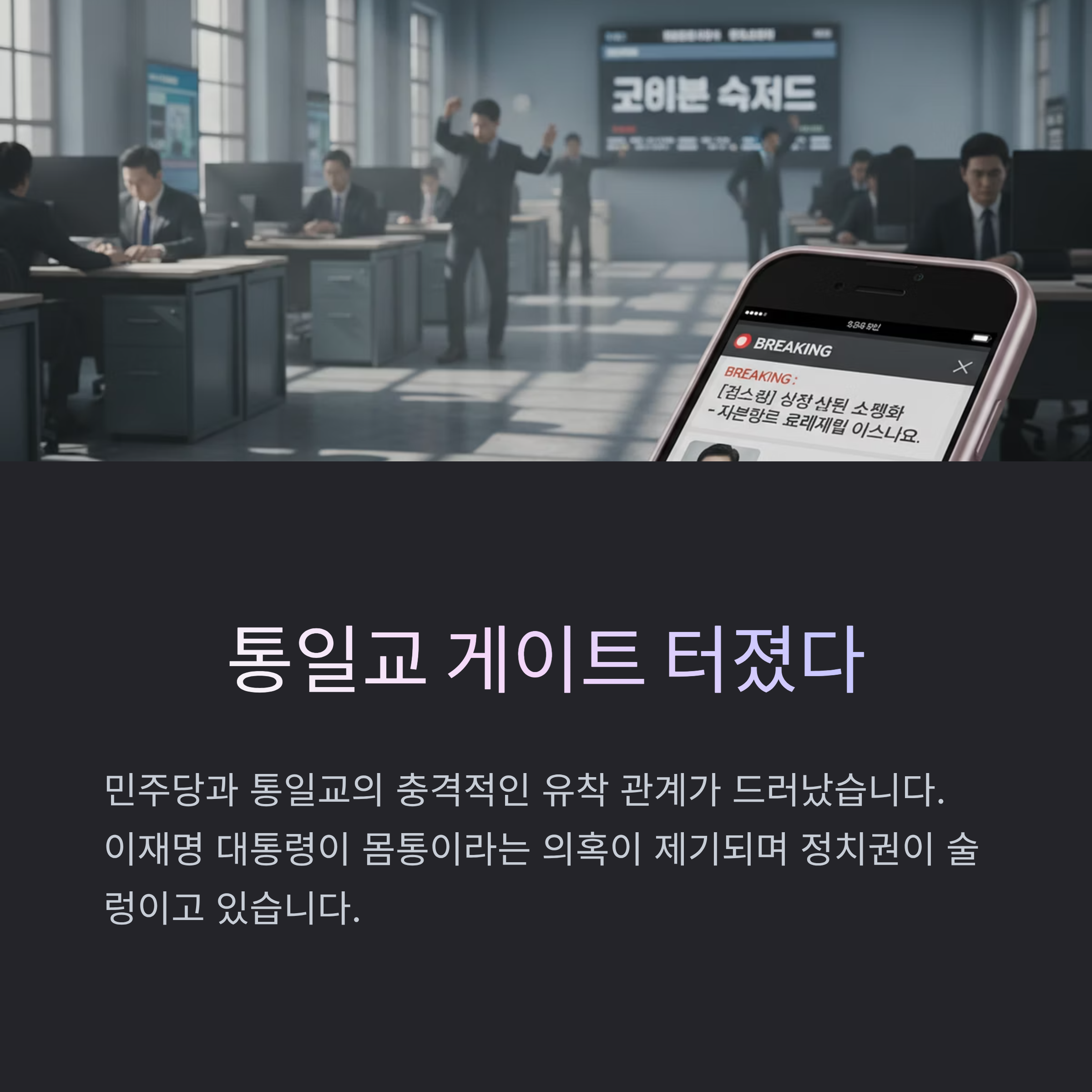 민주당과 통일교의 유착 의혹은 단순한 정치 스캔들을 넘어, 정치와 종교의 부적절한 관계가 국가 시스템에 어떤 영향을 미칠 수 있는지를 보여주는 심각한 사건입니다. 전재수 전 의원의 사퇴로 시작된 의혹은 정동영, 임종성 등 여러 정치인을 거쳐, 통일교 핵심 인사의 민주당 당직 임명이라는 구조적 유착 정황으로까지 번졌습니다. 특히 사건의 폭로를 막기 위해 이재명 대통령이 직접 '통일교 해산' 카드를 꺼내 들었다는 의혹은 사안의 심각성을 더하며, 그가 이 모든 의혹의 '몸통'이라는 주장에 무게를 싣고 있습니다.