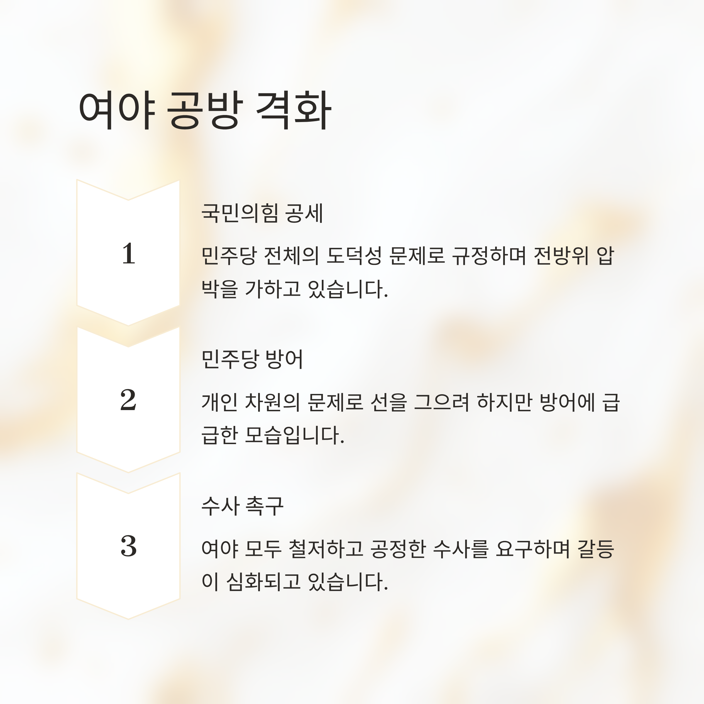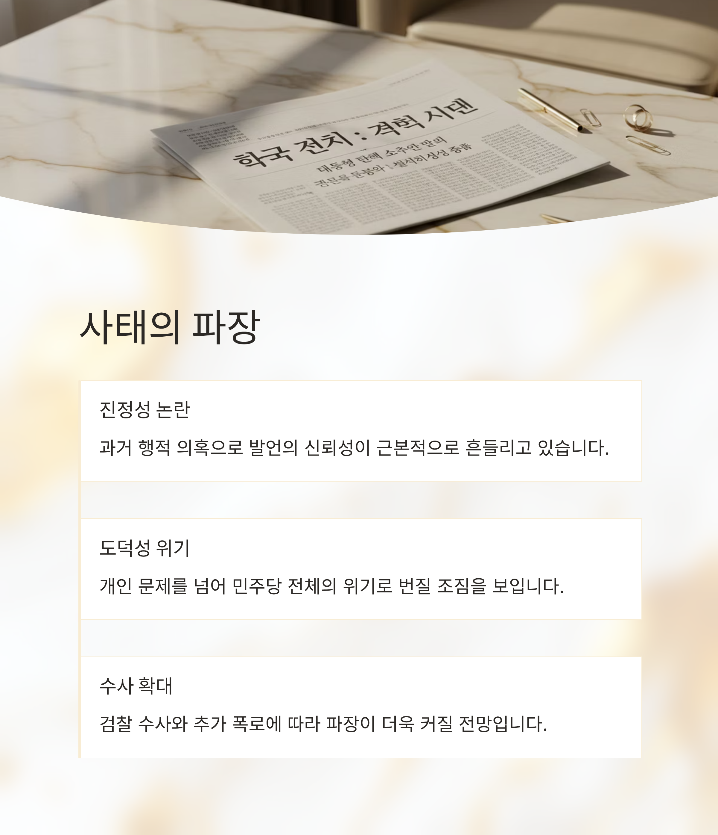 이로 인해 통일교 논란은 이재명 대표의 리더십 문제와 민주당의 도덕성 문제를 동시에 겨누는 양날의 검이 되어 여야 간의 갈등을 극단으로 몰아가고 있습니다.